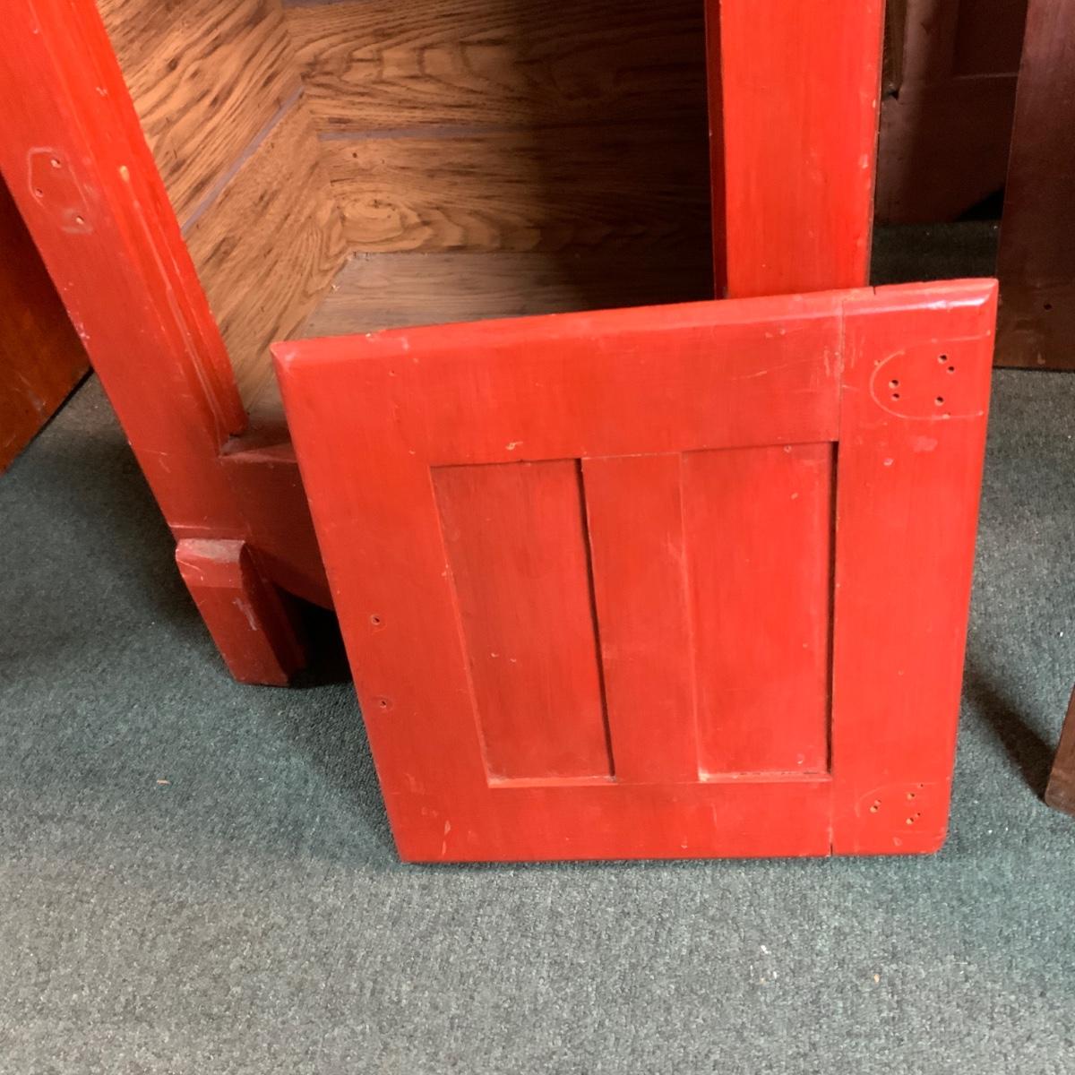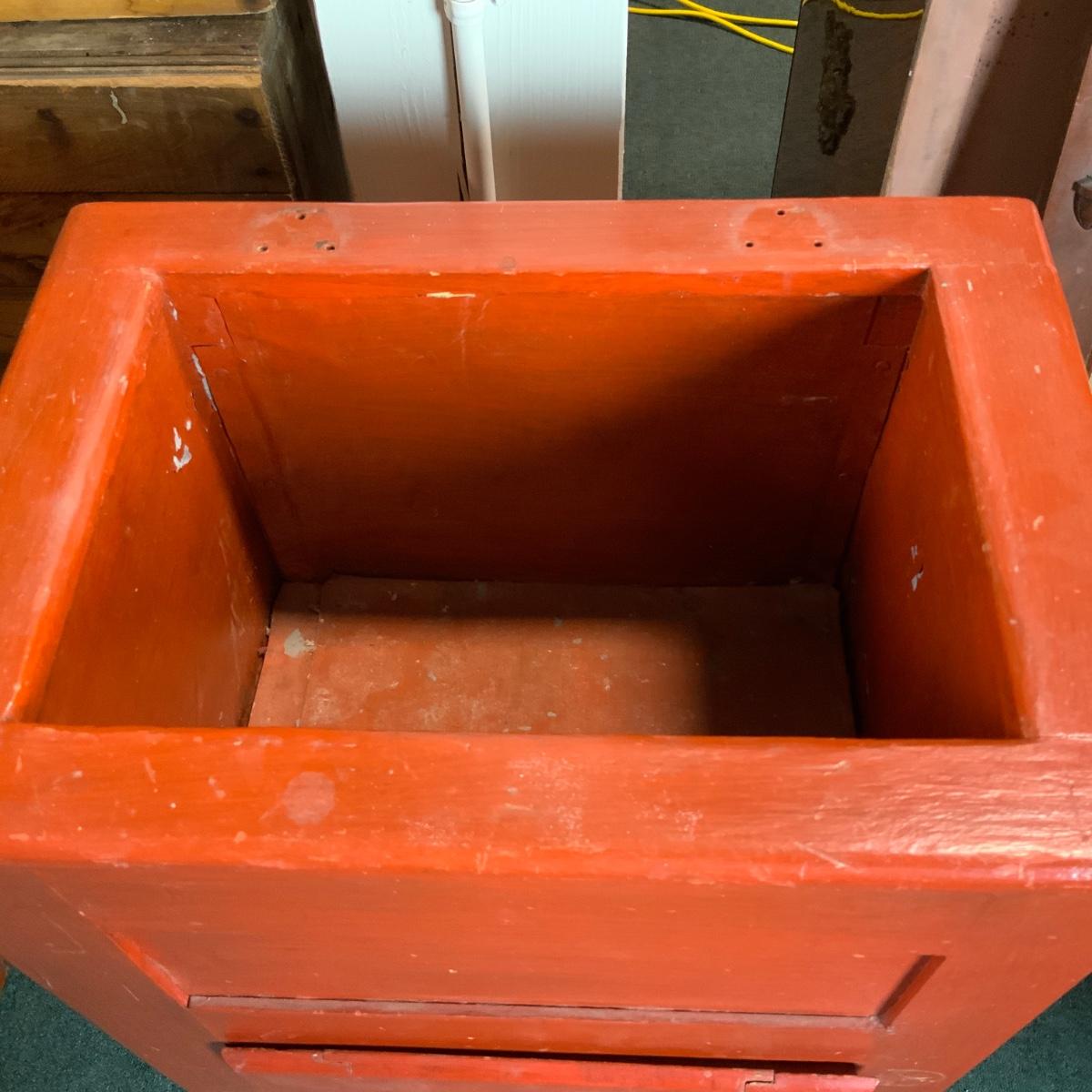 Orange Painted Ice Chest. Interior is metal, and also painted. Solid. //::\\ Please see photos for details and condition. No attempt has been made to hide any imperfections. All items listed in this auction are warehouse items, and need to be cleaned. A majority of the items need restoration as well. All items are sold AS IS and WITHOUT GUARANTEE. If you are uncertain about an item, DO NOT BID. Due to the nature of this online auction in-person inspection is HIGHLY recommended. All Sales are FINAL. Pick Up Times are FIRM. Please confirm with your own schedule that you can pick up in the scheduled times listed in the Terms and Conditions. Any questions please message the auctioneer. DO NOT Contact The Harp Gallery.