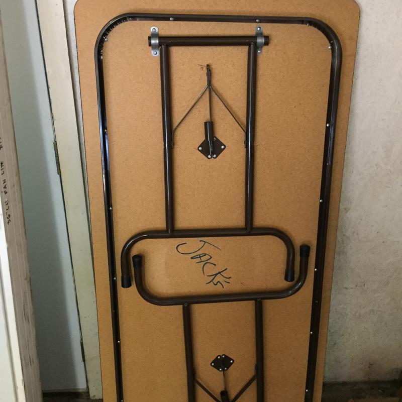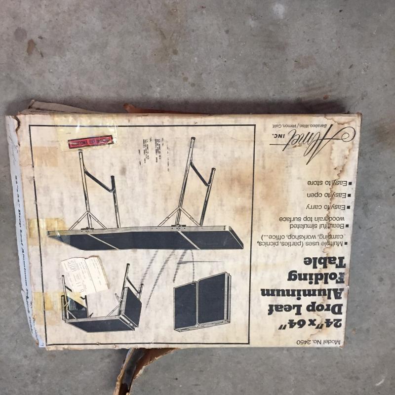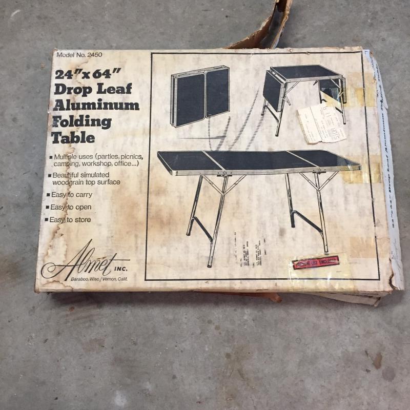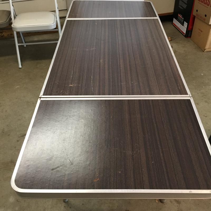Several tables and chairs in this lot. Folding Table Measures 24”x64” Other Table Measures 29.75” x 60” Both Tables have some scratches. Lot also includes four Stackable Chairs and 2 Folding Padded Chairs. Local Pickup Only