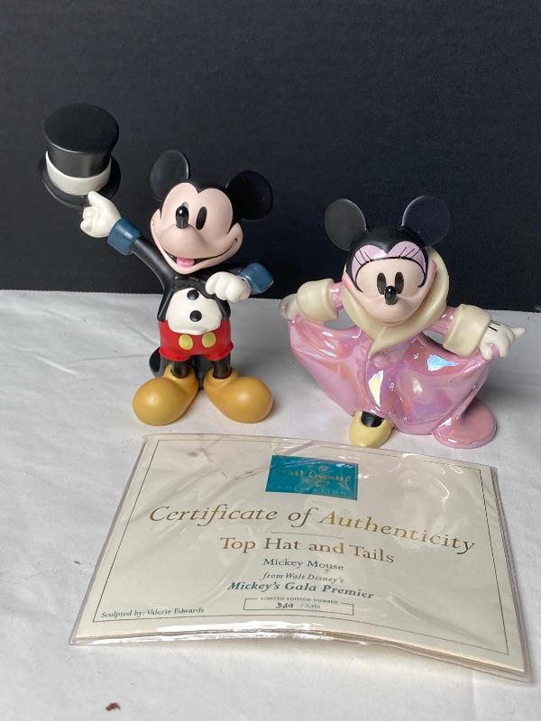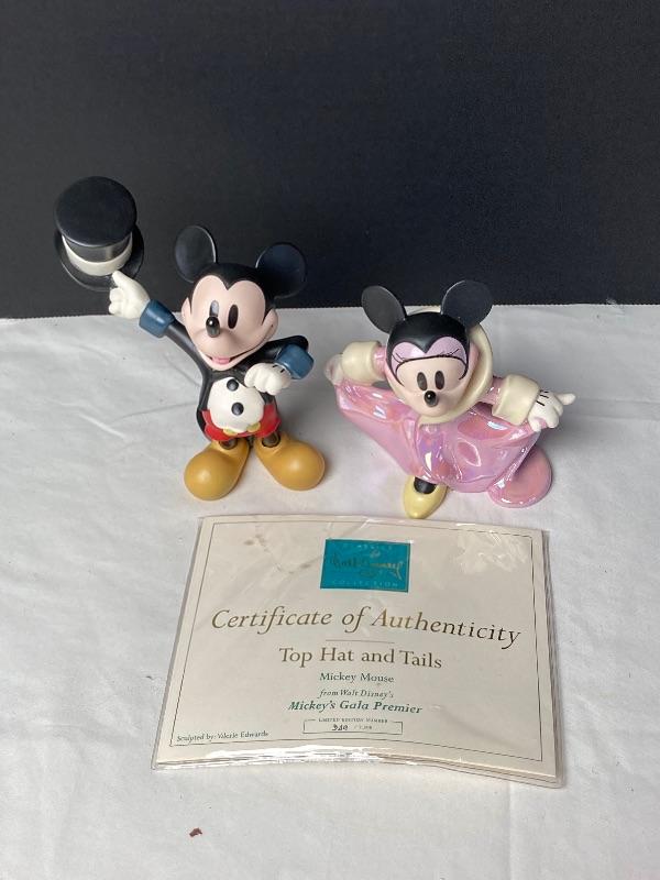 Mickey’s Gala Premier “Top Hat And Tails” Mickey Mouse and Minnie Mouse porcelain figurines. Both figurines come with certificate of authenticity and original box