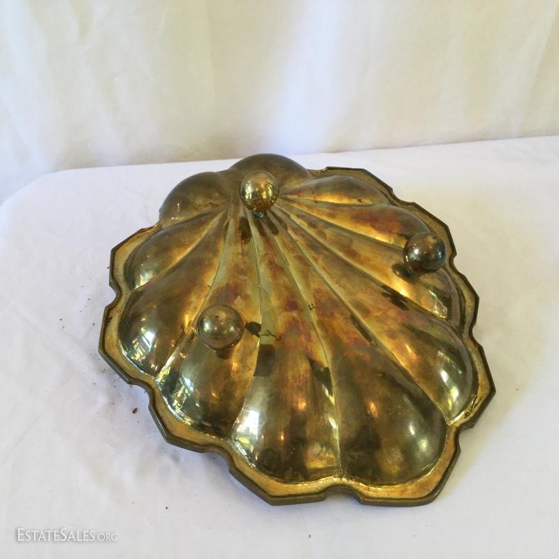 Lot 32- Large Shell Brass Bowl and Candlesticks