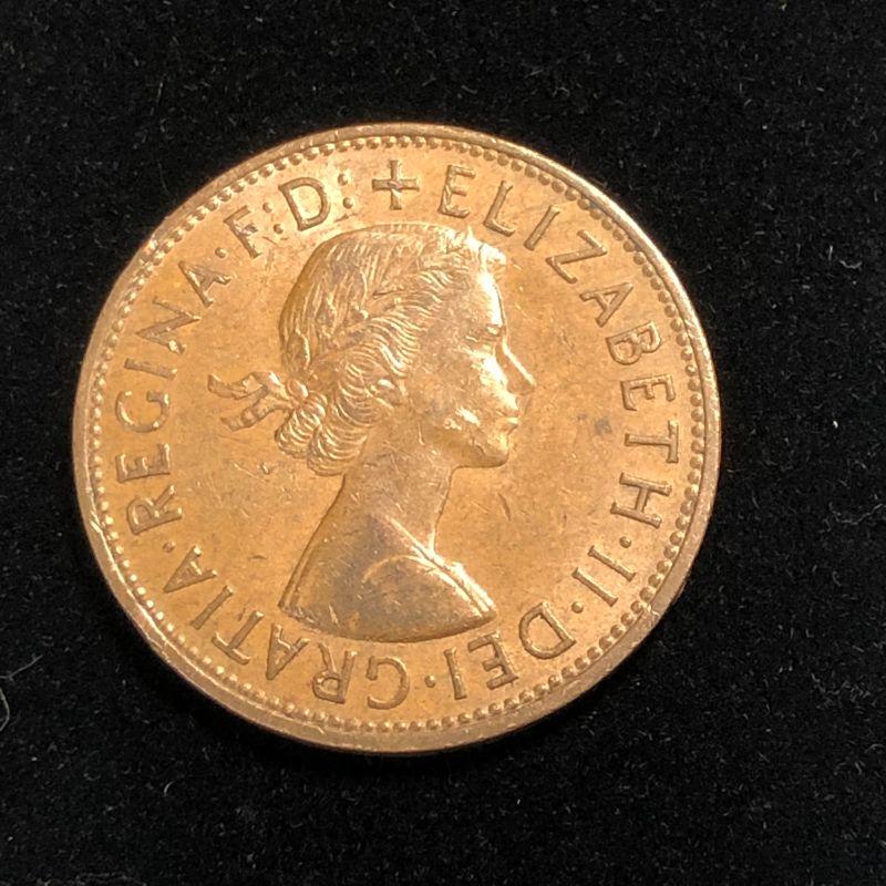 My Google search indicates that this is made of bronze and it may be the last issue prior to the decimalization of the currency (something to do with how many this equals that and it hurt my head so I stopped trying to understand). Please see pictures for details.