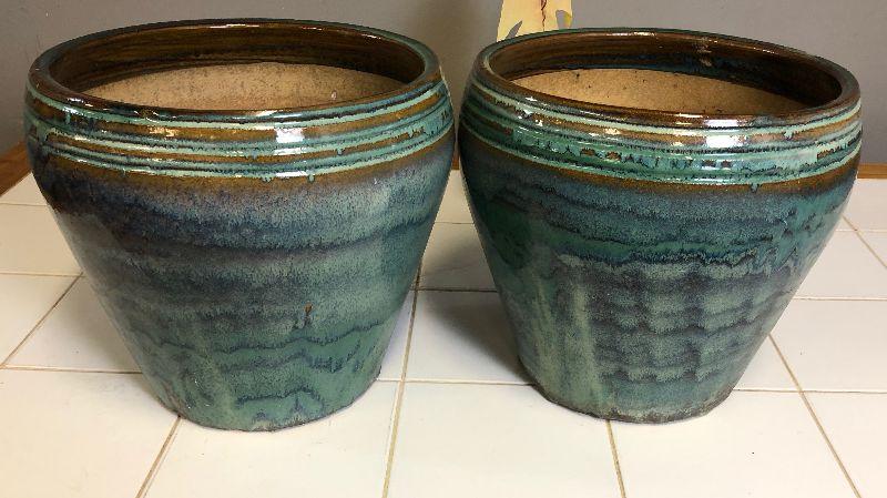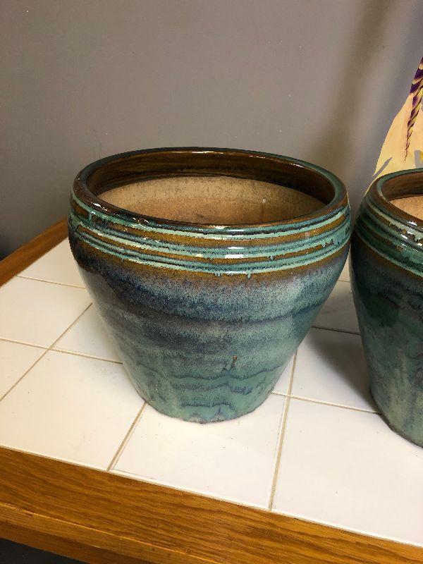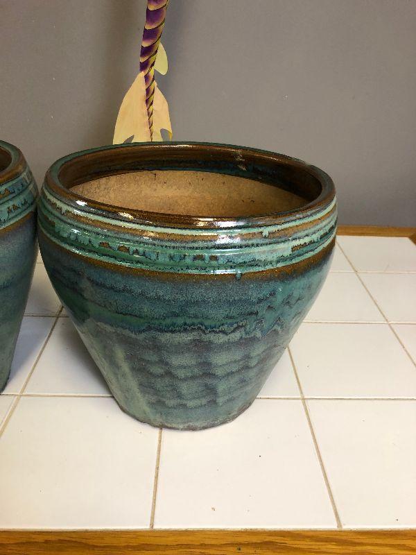 Lot #32 2 or Twin Ceramic Turquoise Pots