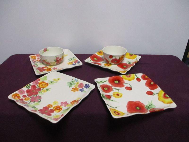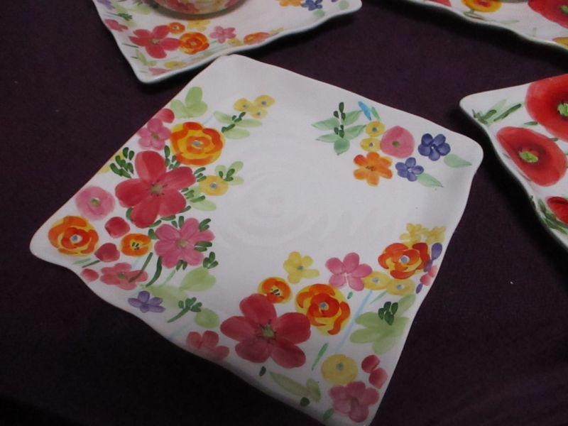 4 - 11 inch dinner plates and 2 - 6 inch salad bowls