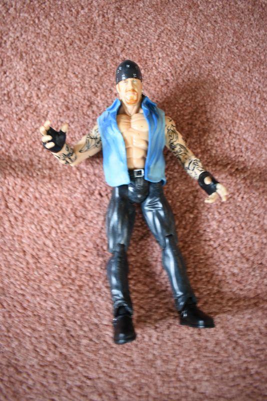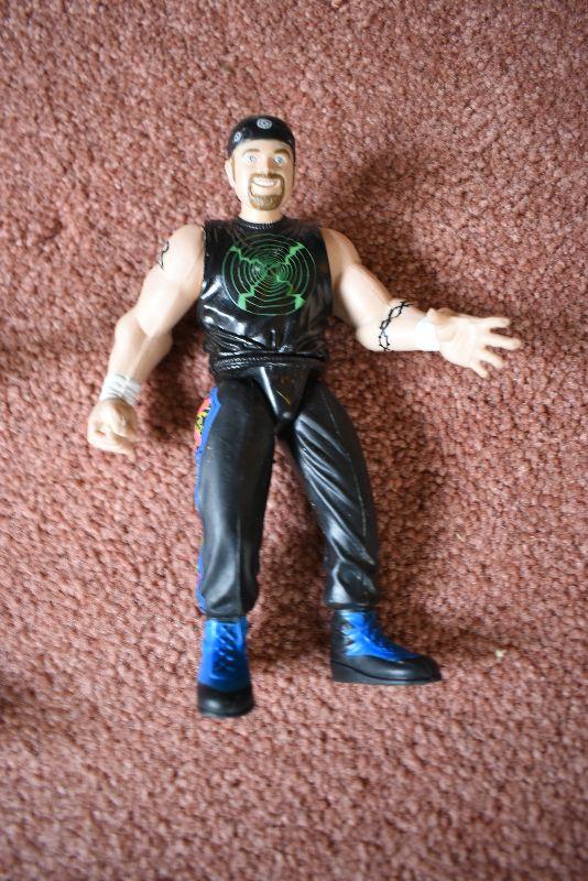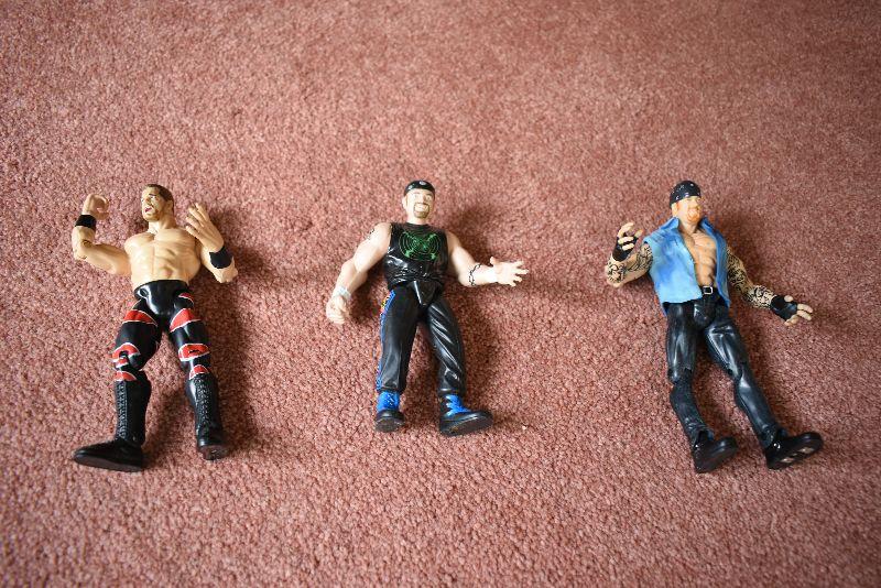 Three wrestling action figures.