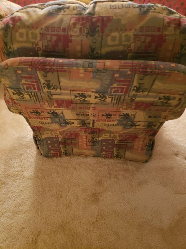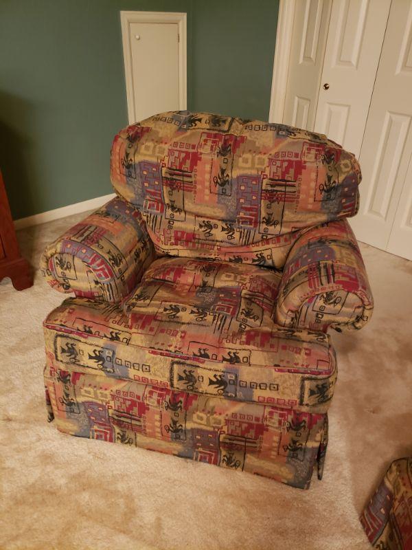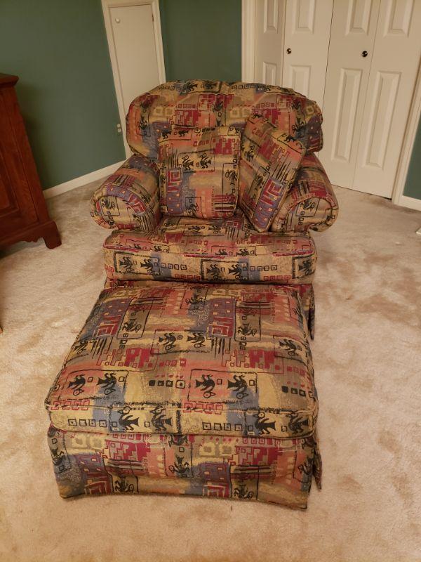 Pillows not Down. Chair: 35"x35"x36" ... Ottoman: 29"x23"x17"