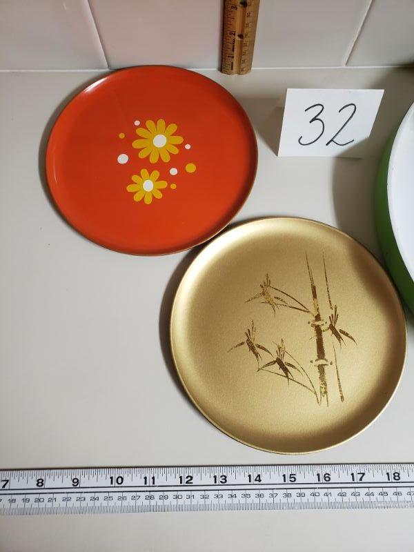 2 Plates- 1 Orange with Yellow Flowers and 1 Gold Bamboo