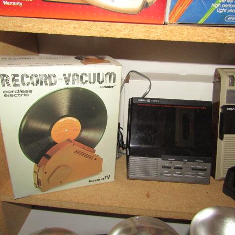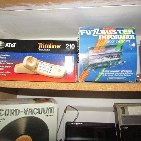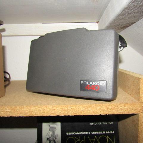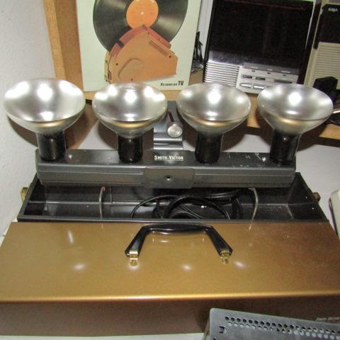 SMITH & VICTOR PHOTOGRAPHY LIGHTS, POLAROID 440 INSTANT CAMERA, MOVIE PROJECTOR SCREEN, RECORD ALBUM VACUUM, FUZZ BUSTER INFORMER, COMPUTER MONITOR, TELEPHONES