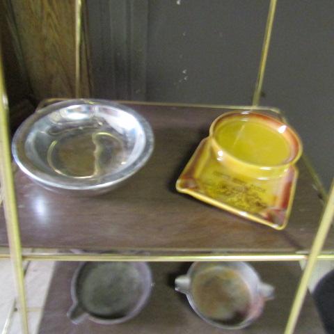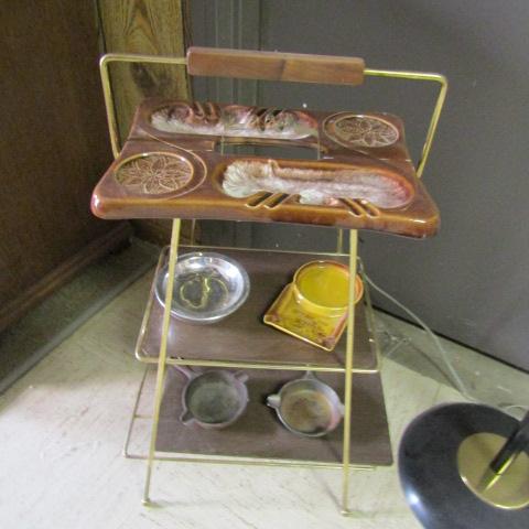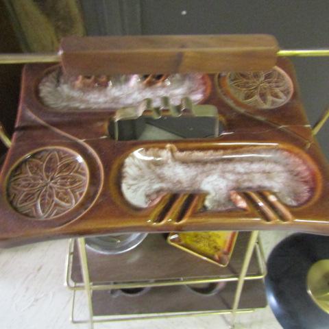 VINTAGE ASHTRAY ON STAND. ALSO 2 CAST IRON AND SEVERAL OTHER ASHTRAYS