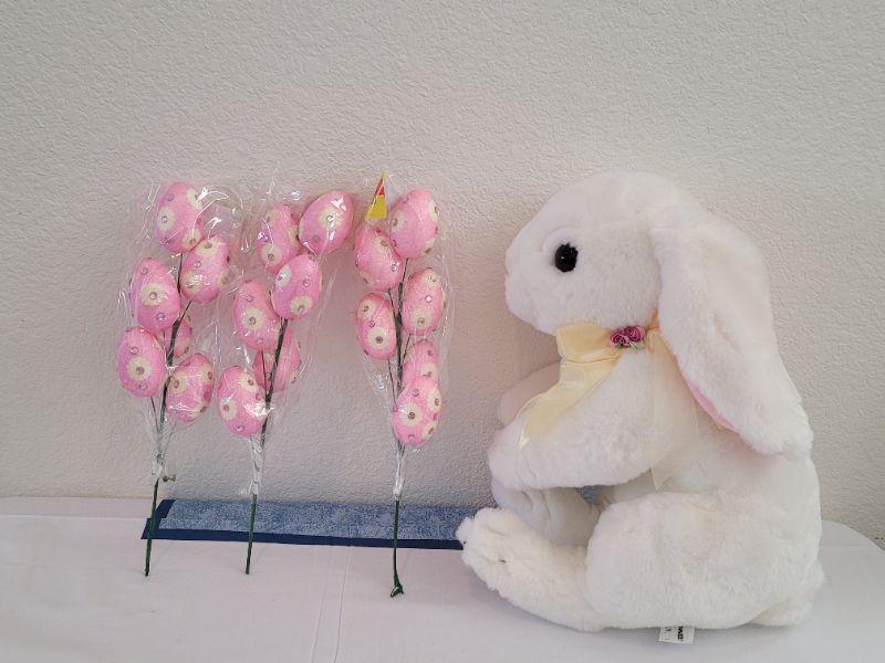 Lot 32: (3) New Easter Egg Decorations & a Plush Bunny