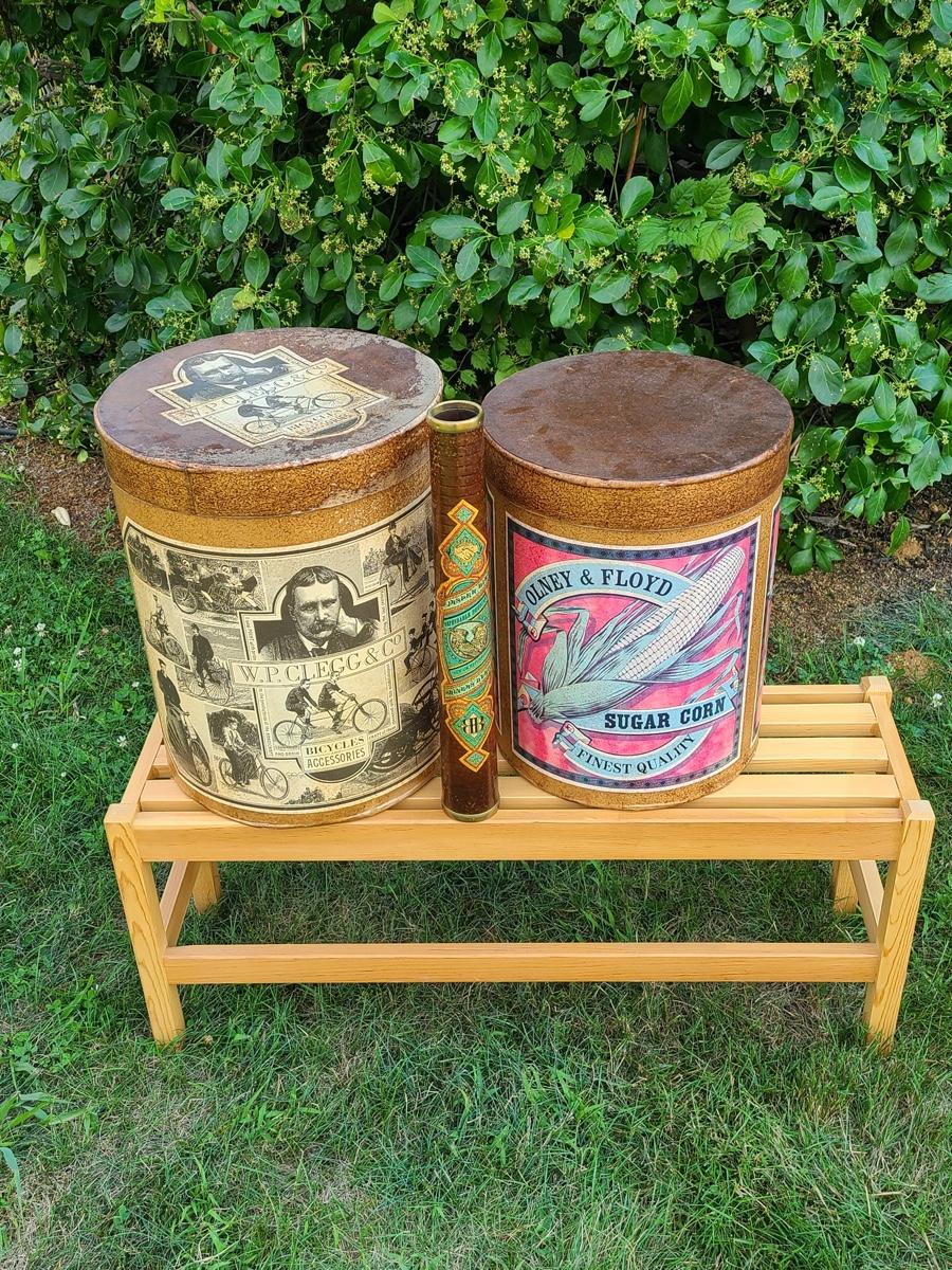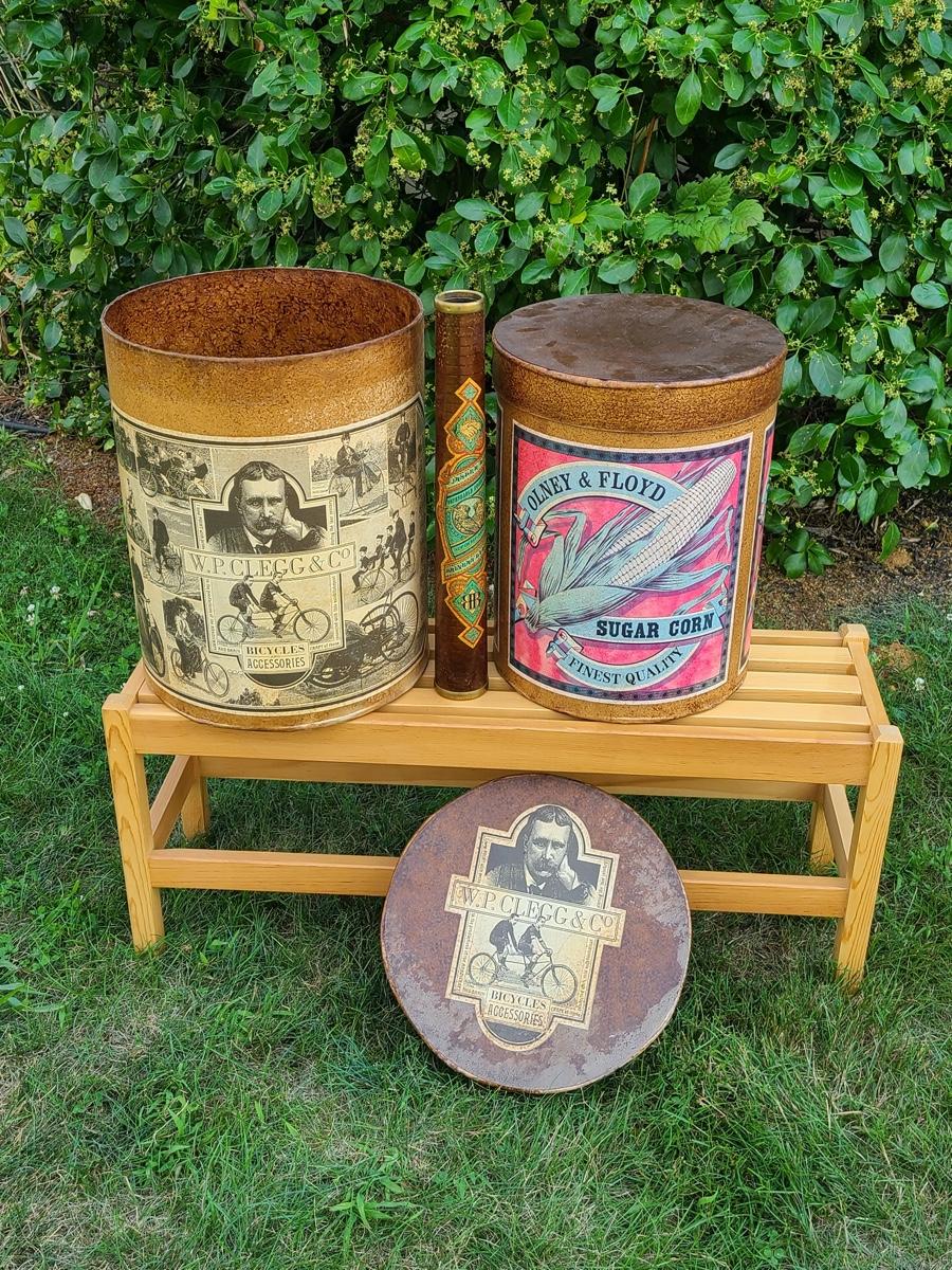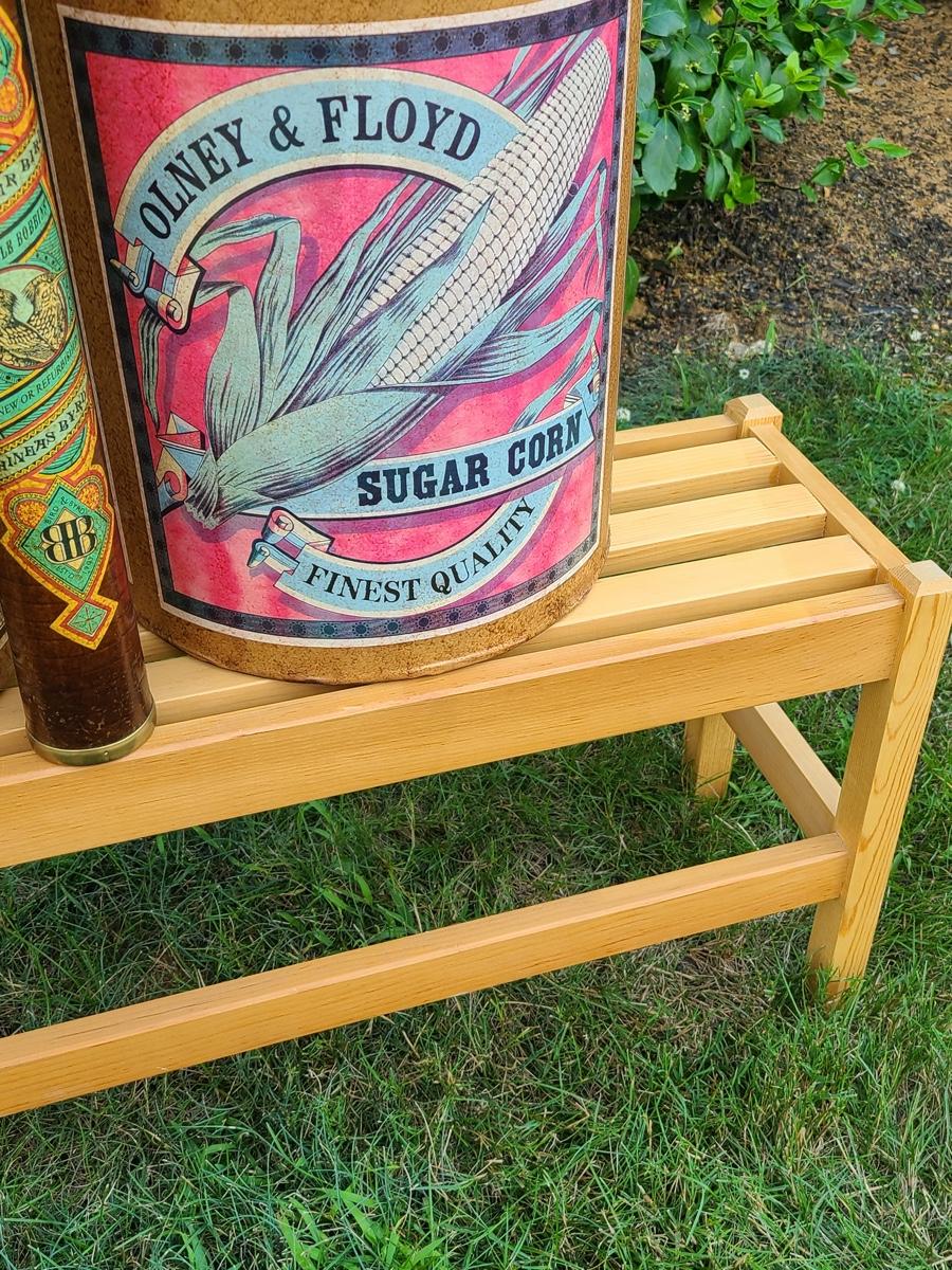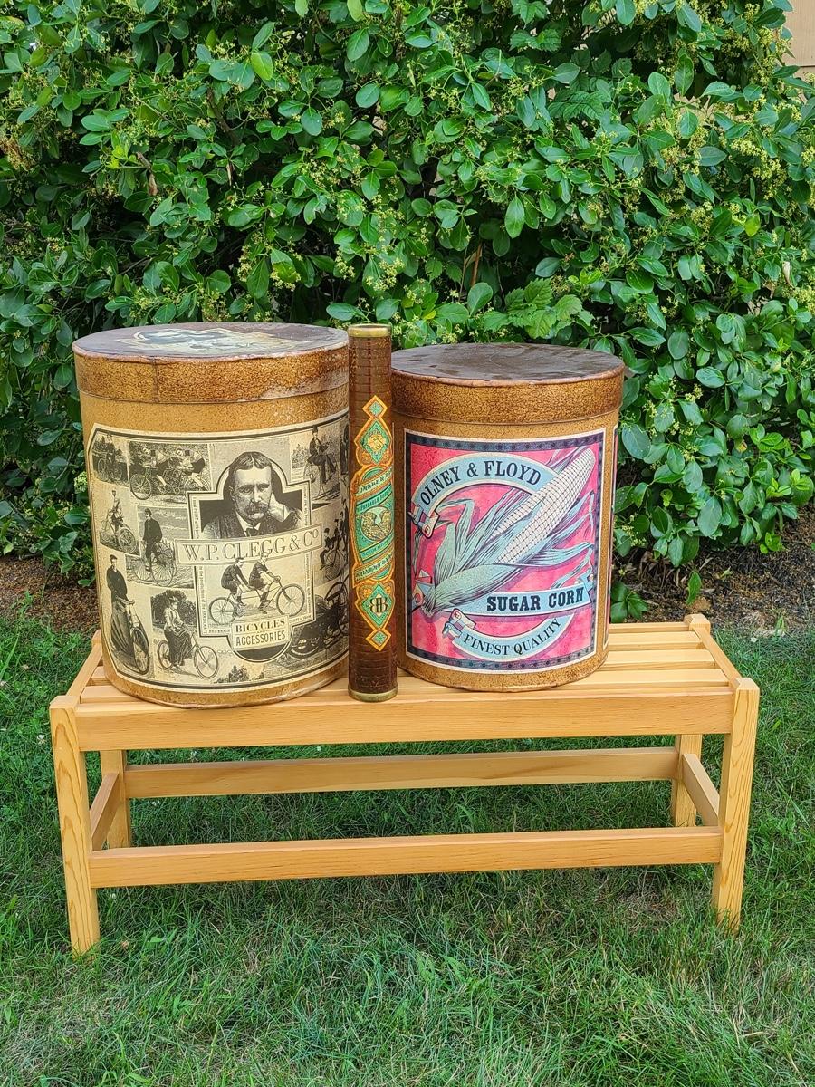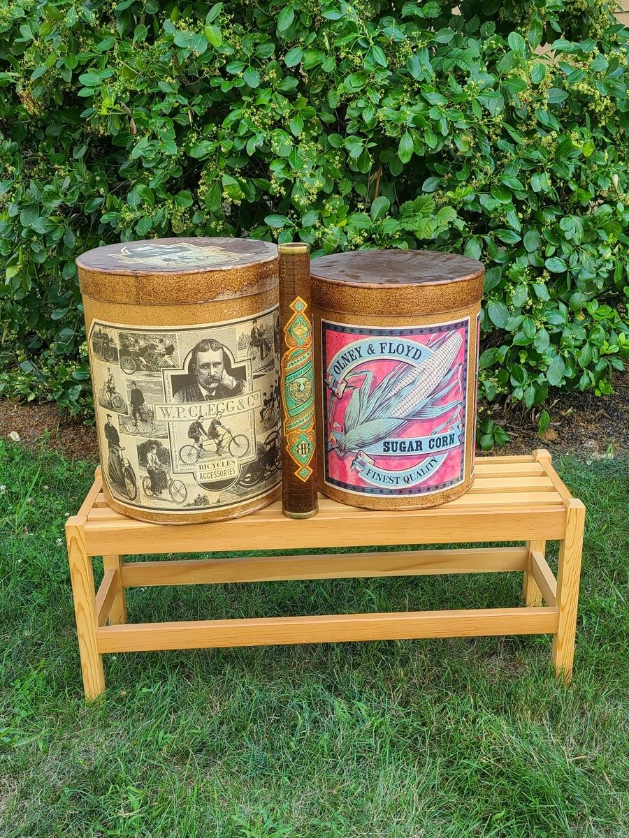 Lot 326: Wood Bench and Large Store Cardboard Canisters/Storage