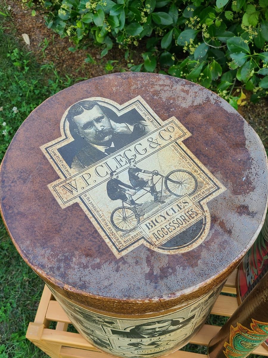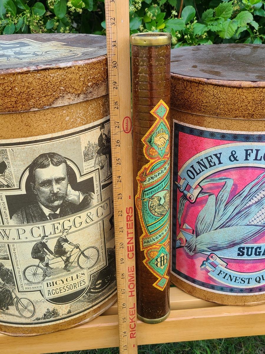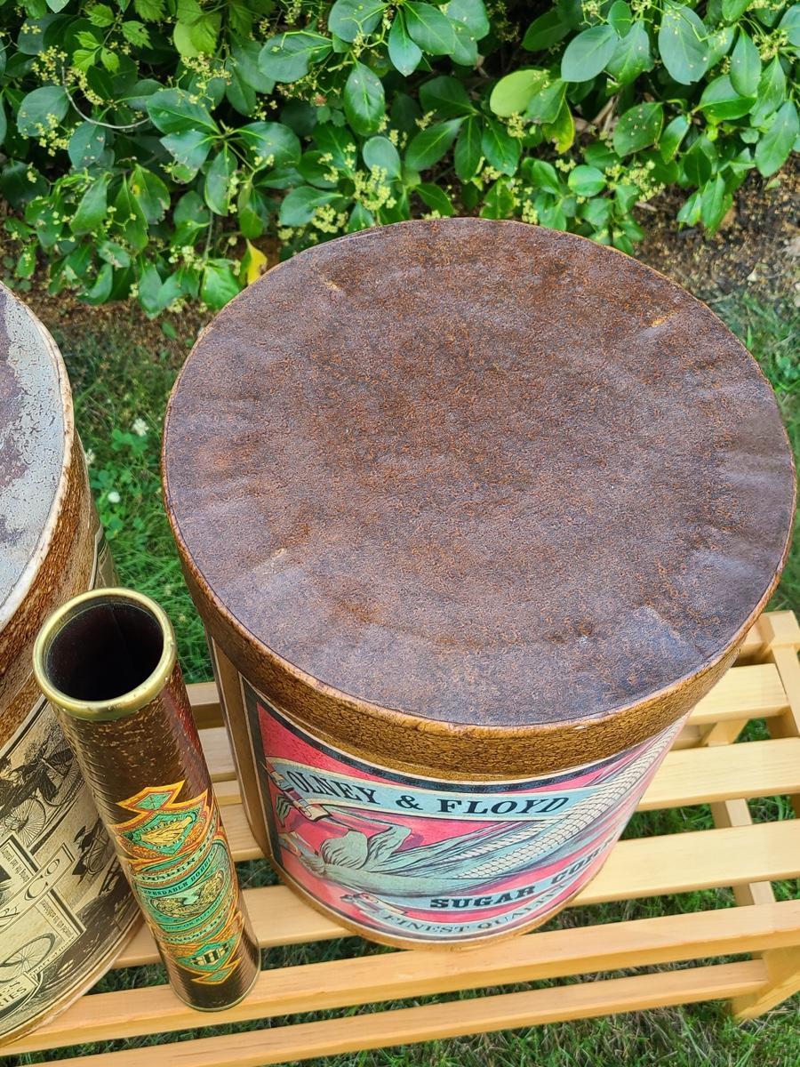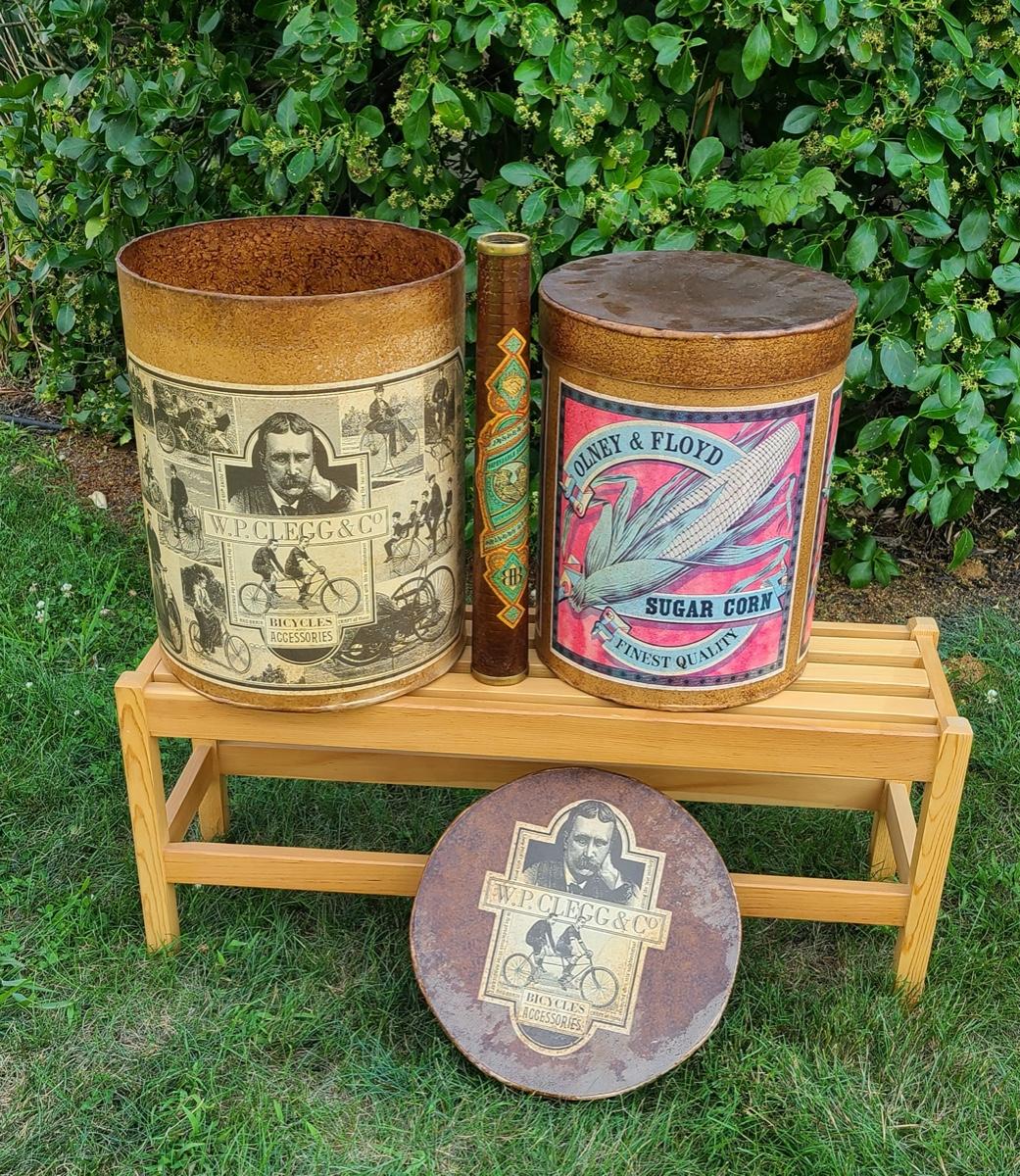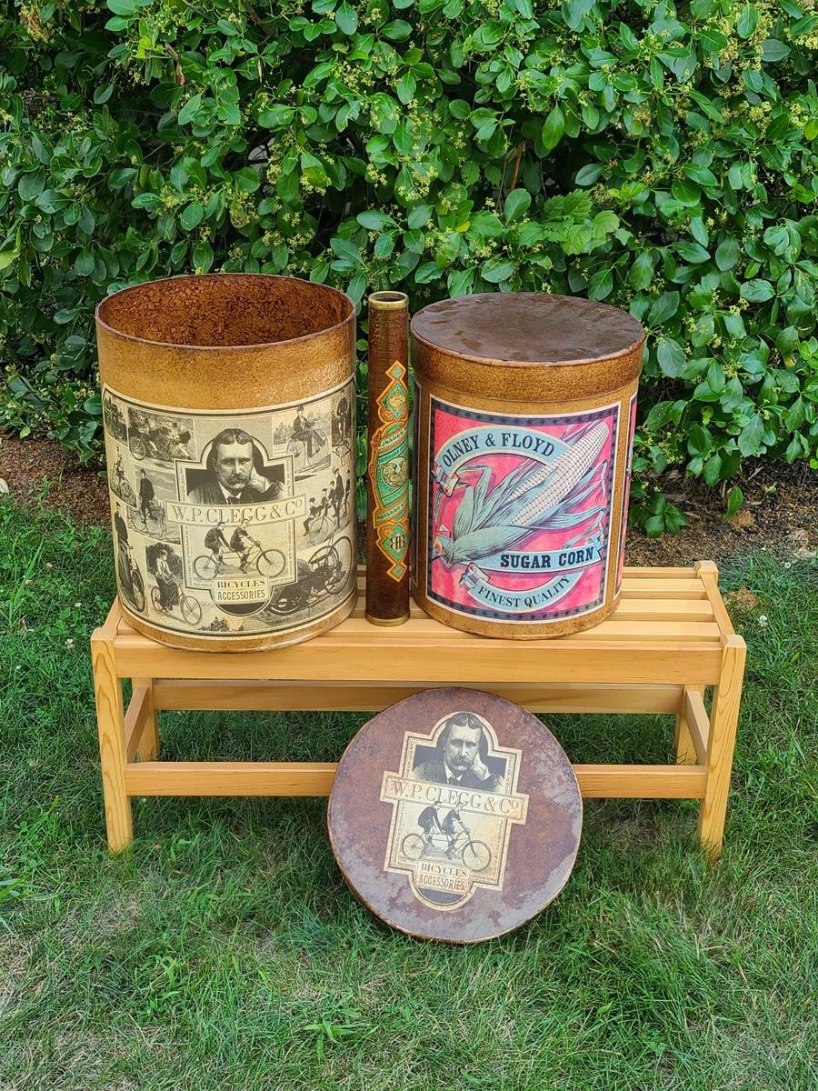 Lot 326: Wood Bench and Large Store Cardboard Canisters/Storage
