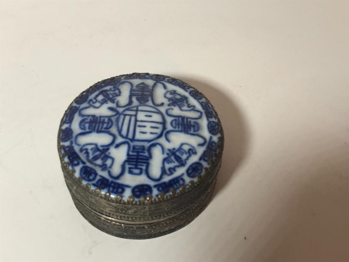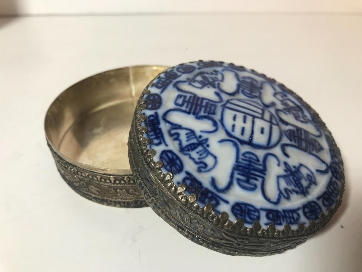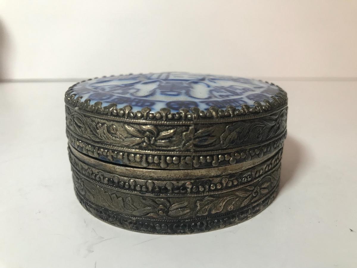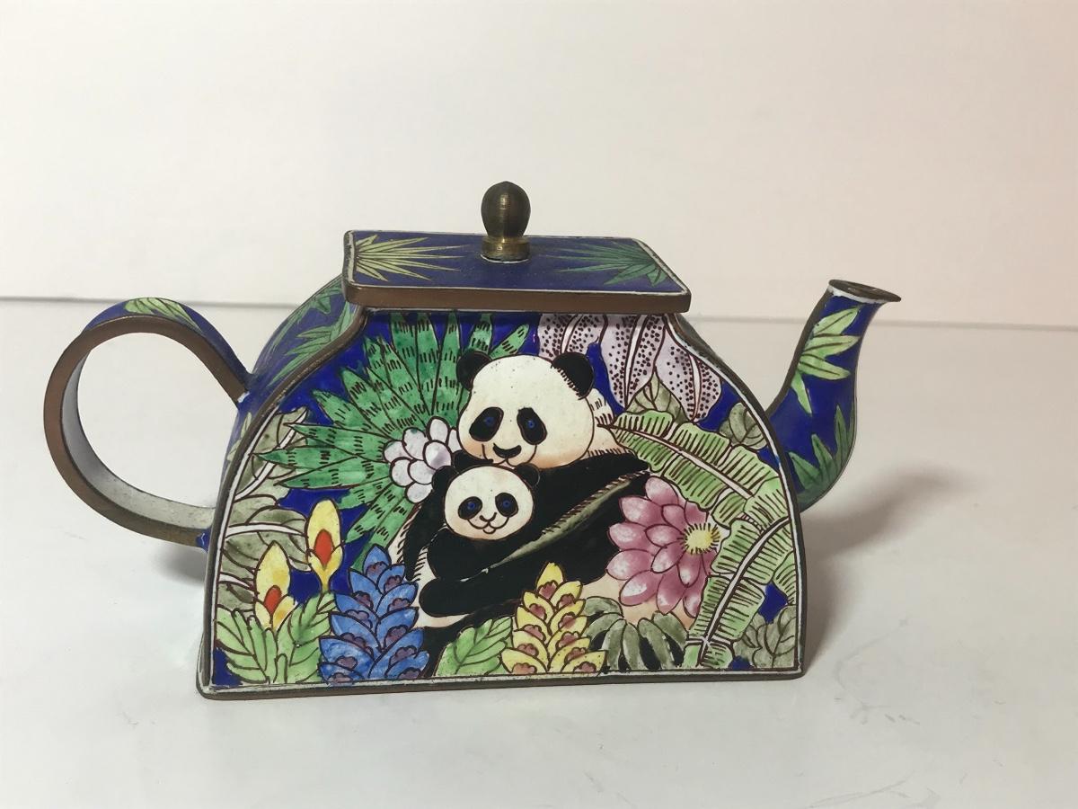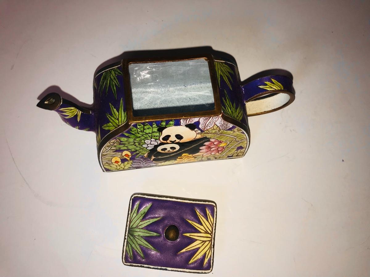 Lot 32: Kelvin Chen Enameled Mini Teapot, Antique Porcelain/Metal Trinket Box and More