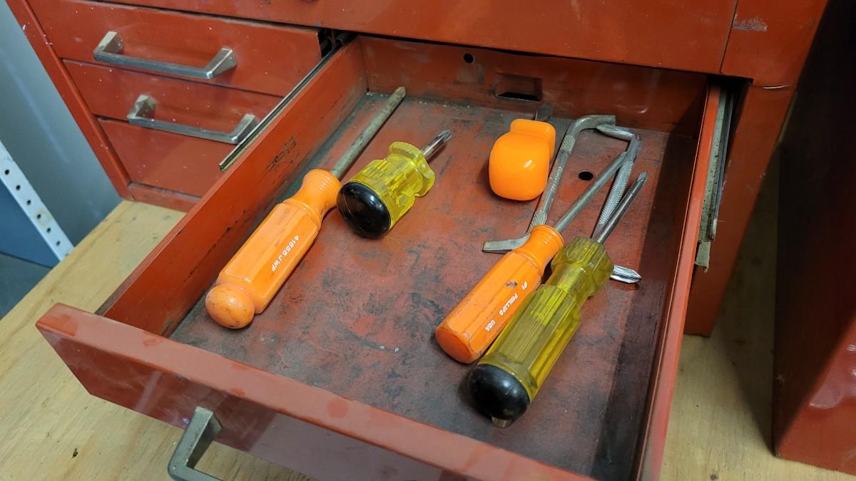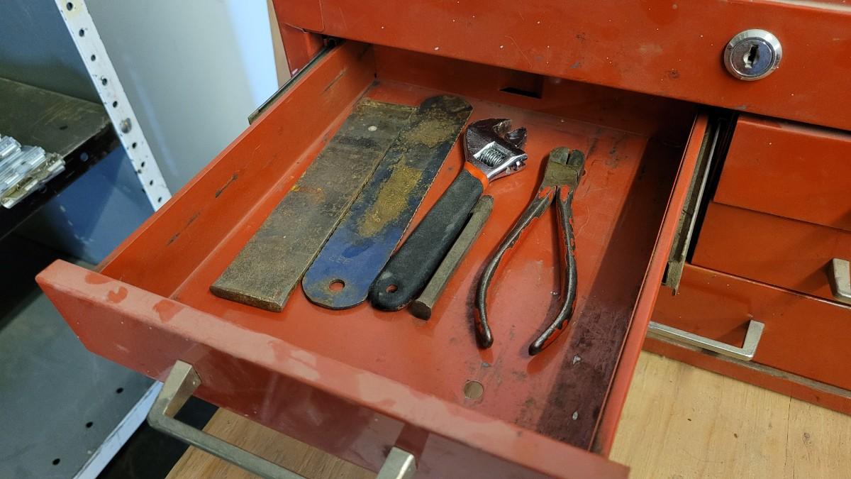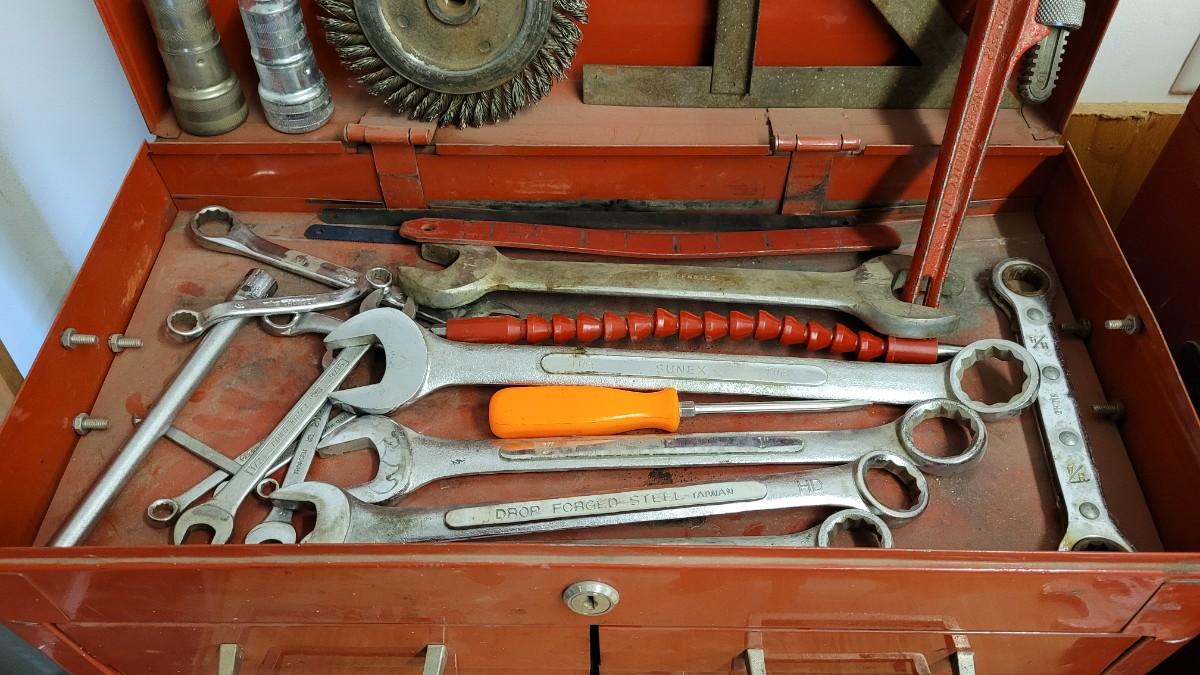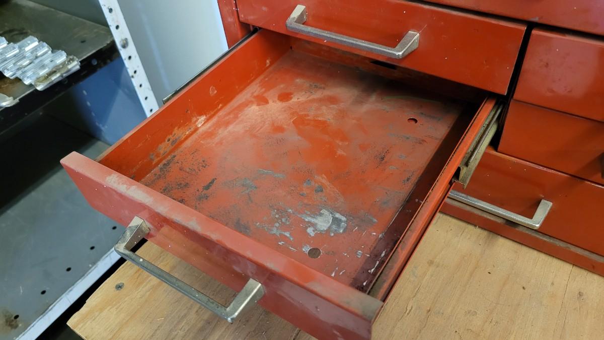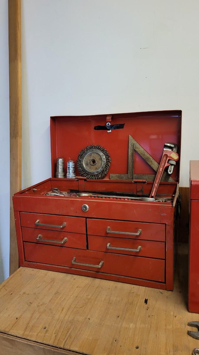 Lot 32: Vintage Red Multi Drawer Toolbox with Tools PERFECT STARTER KIT