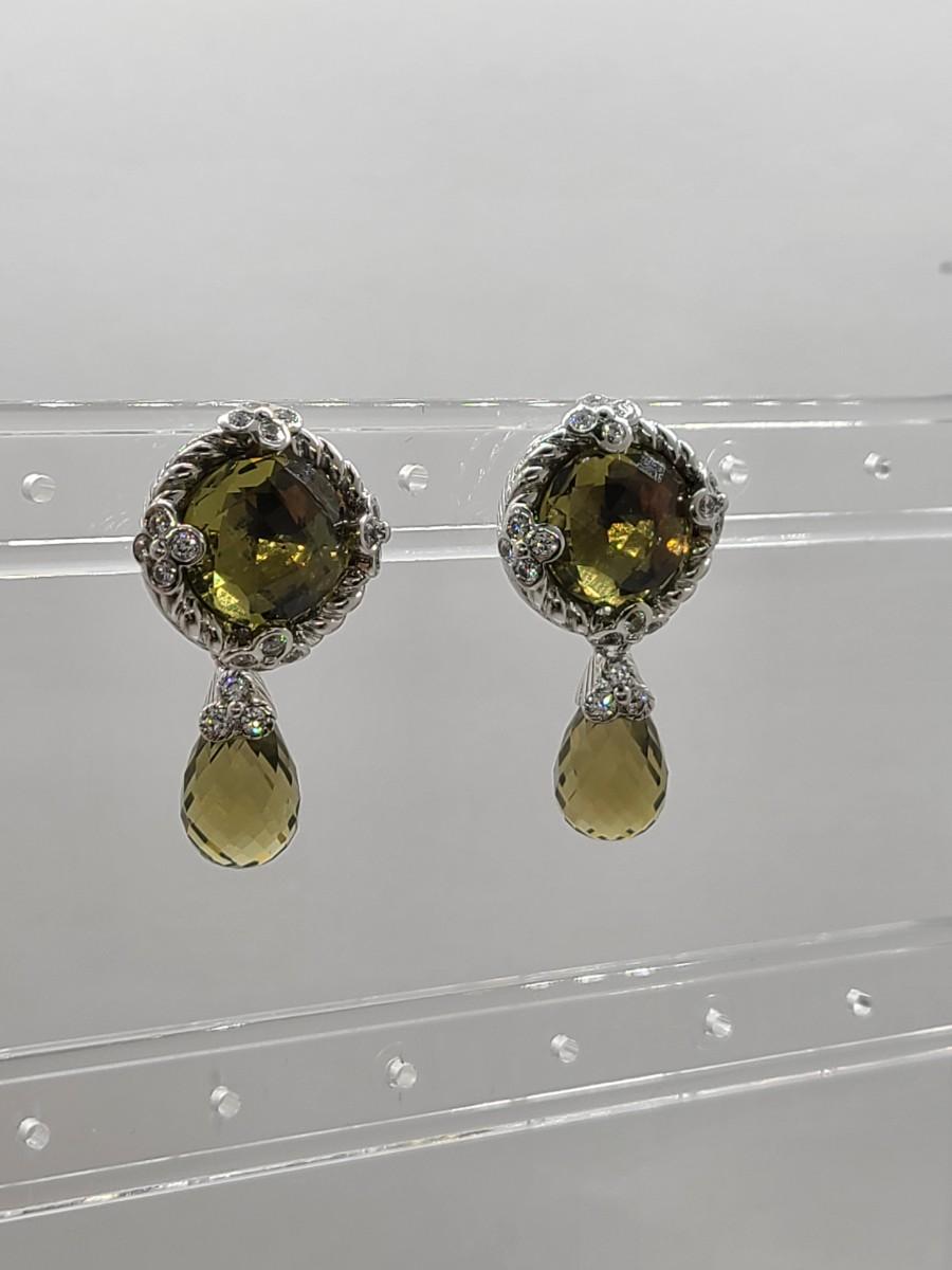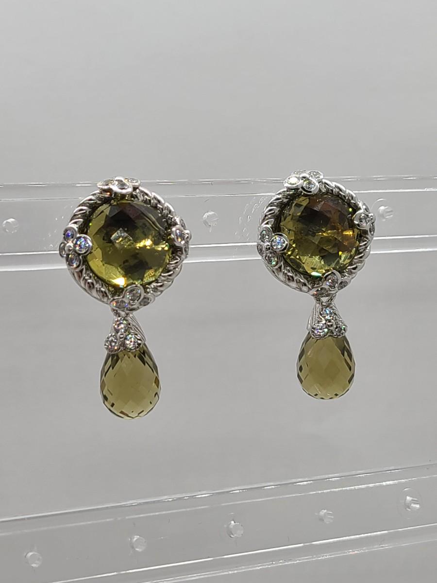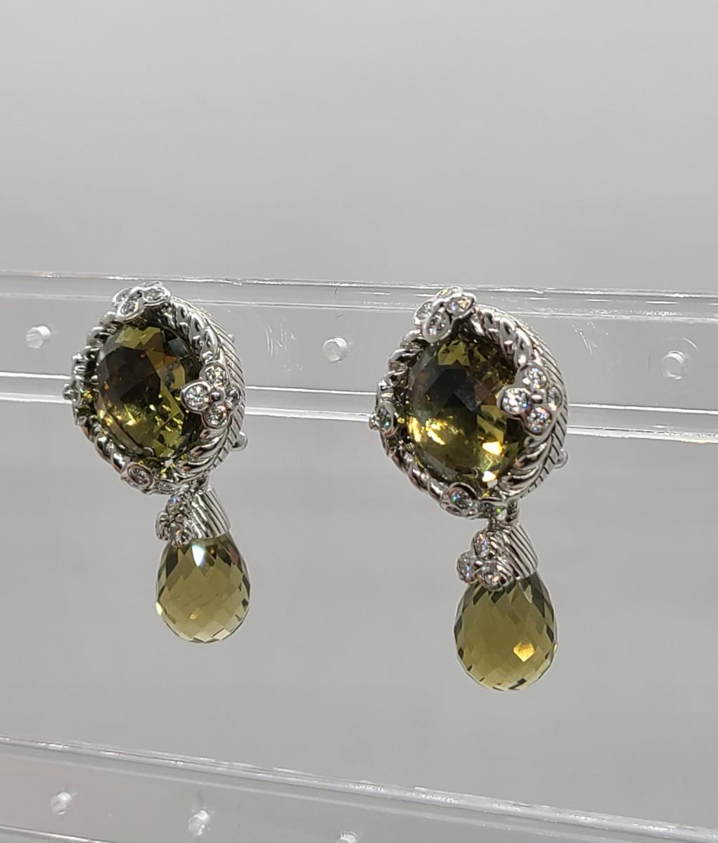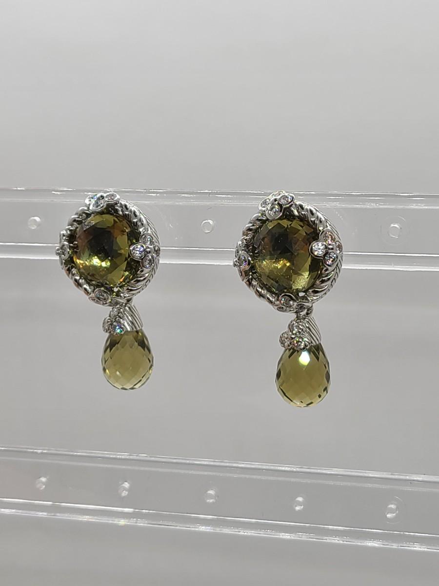 Dazzling Judith Ripka green and clear Cubic Zirconia 925 Tear Drop pierced earrings.