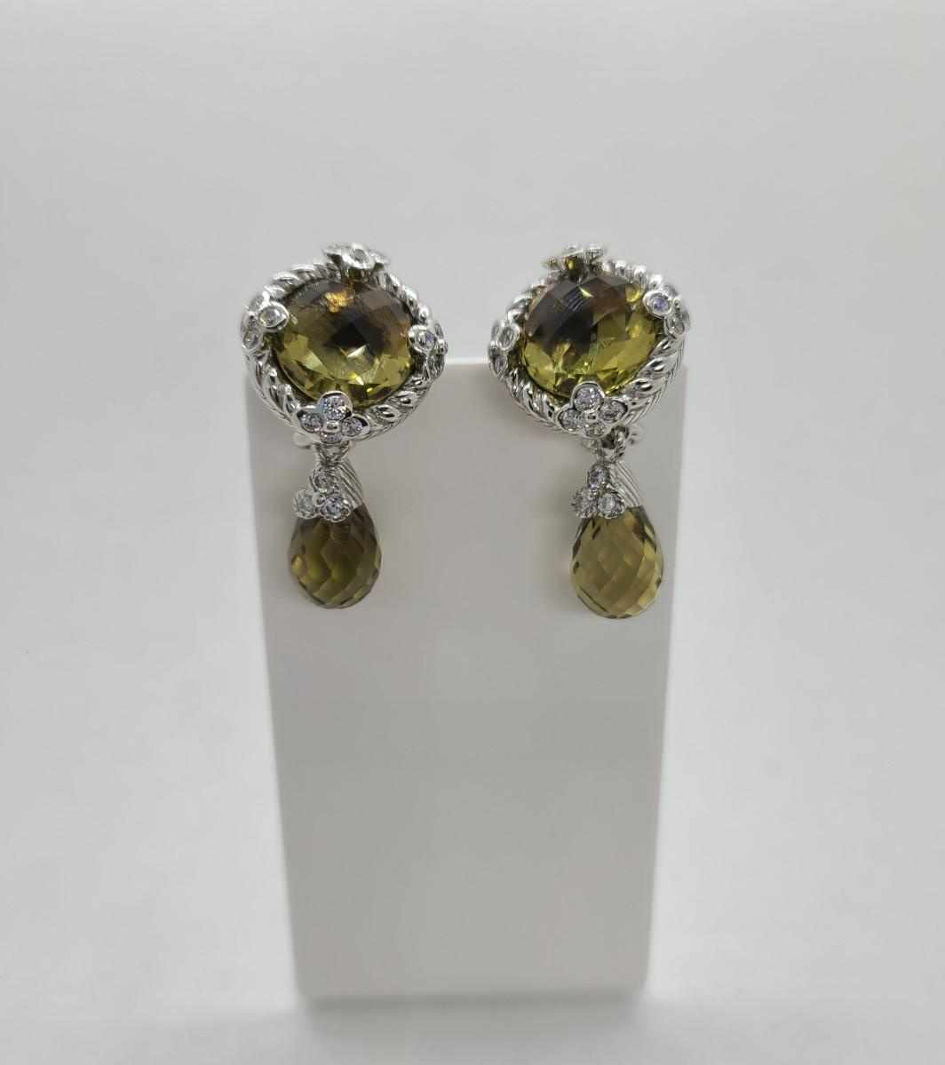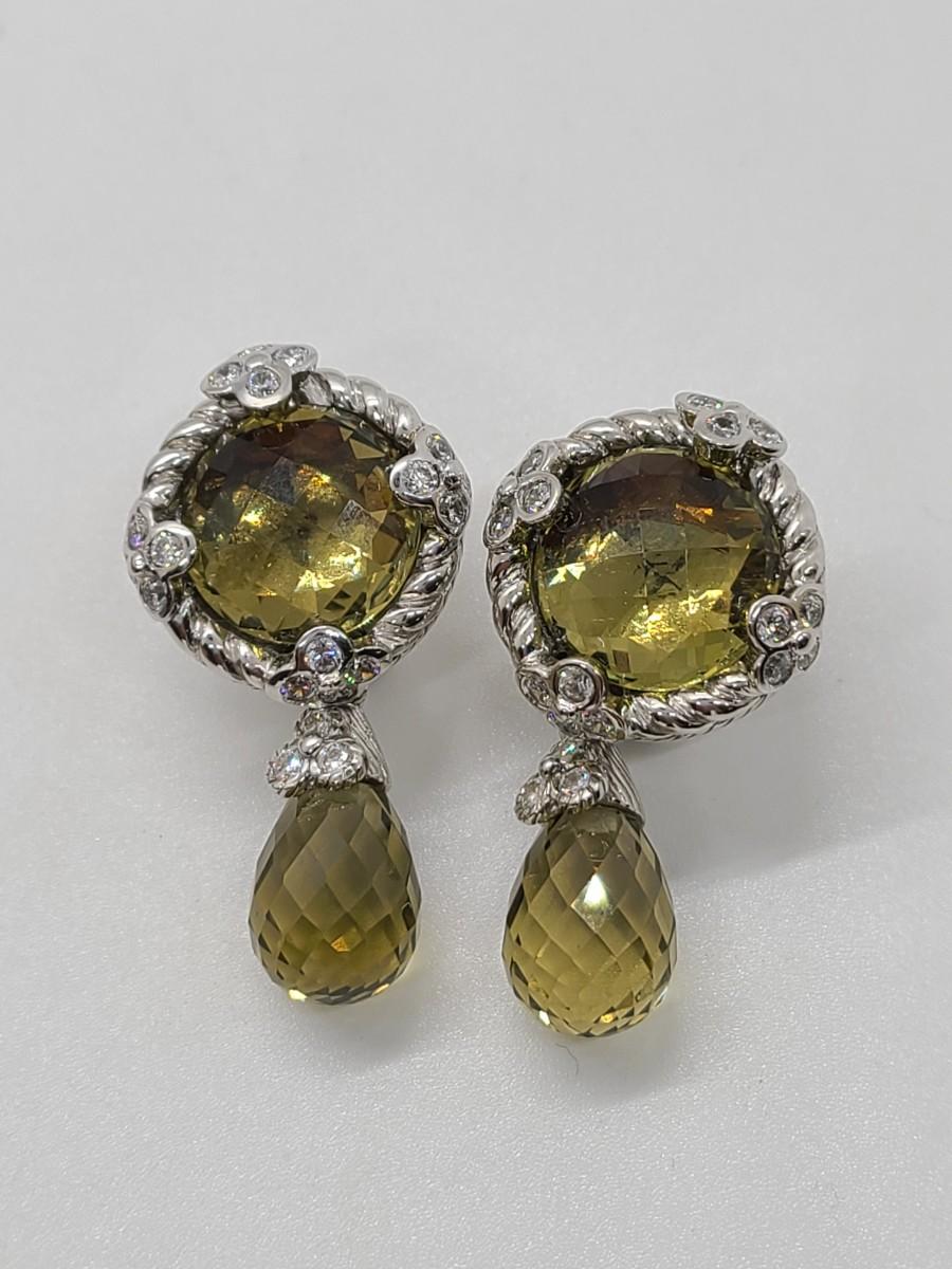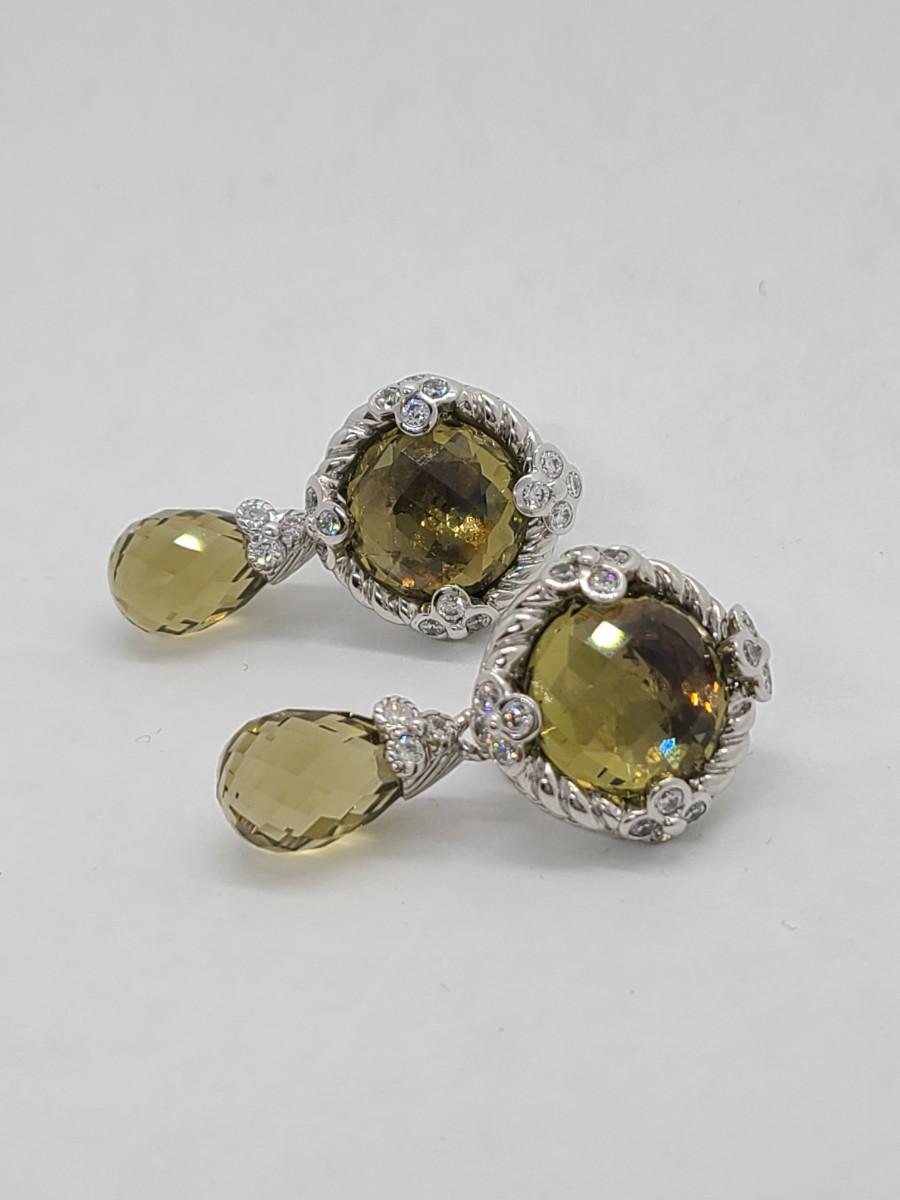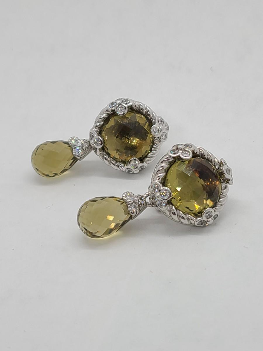Dazzling Judith Ripka green and clear Cubic Zirconia 925 Tear Drop pierced earrings.