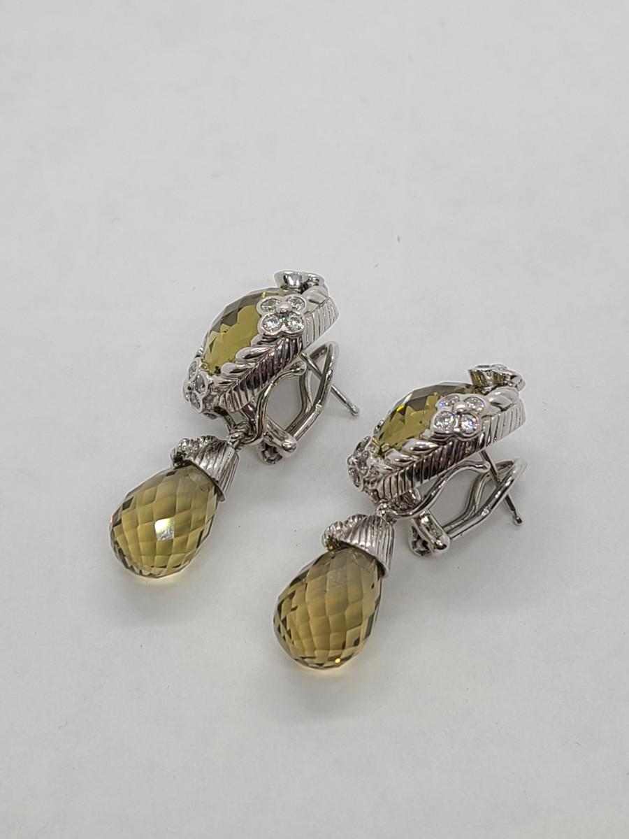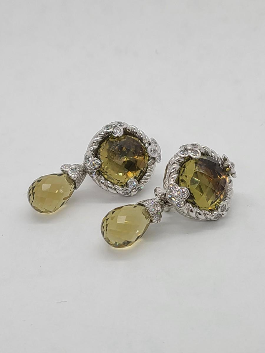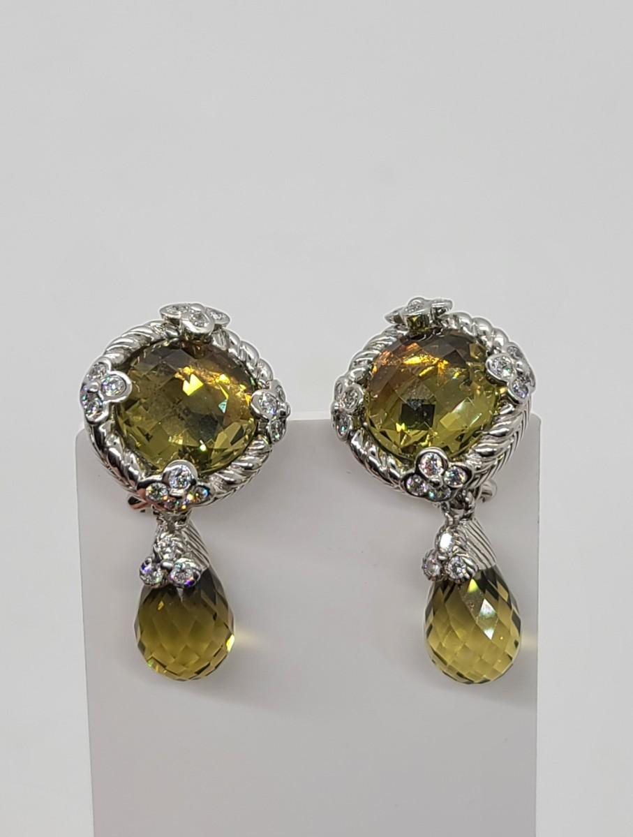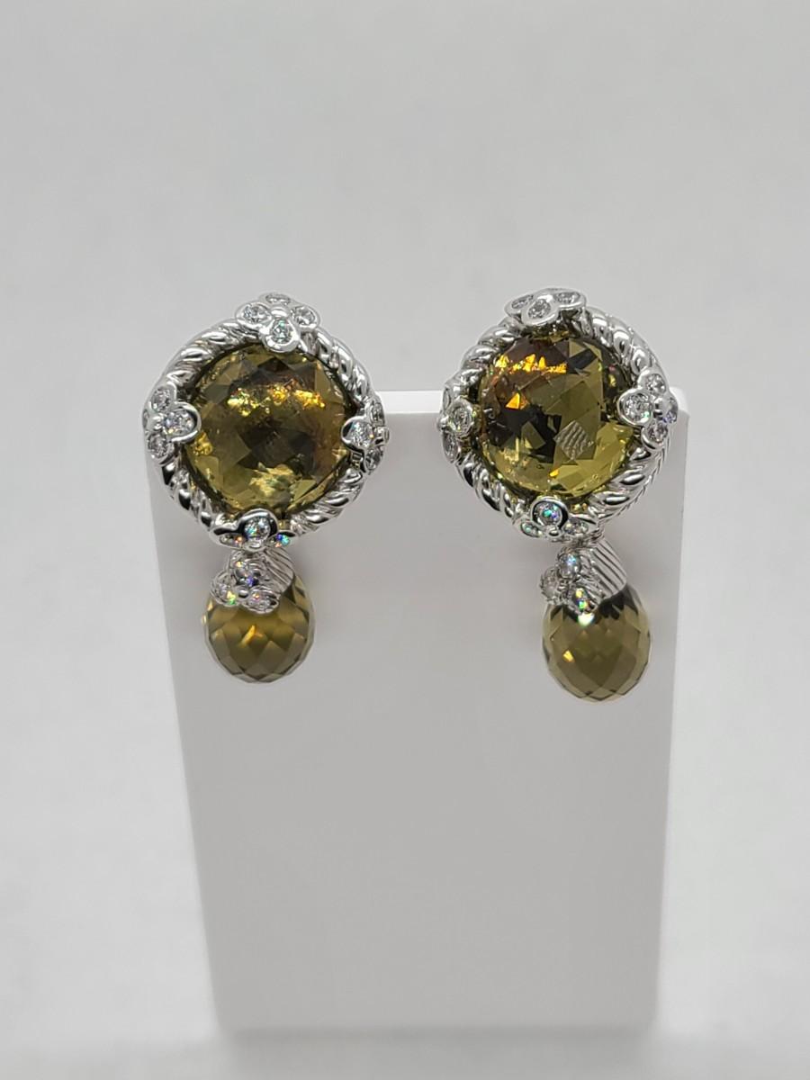 Dazzling Judith Ripka green and clear Cubic Zirconia 925 Tear Drop pierced earrings.