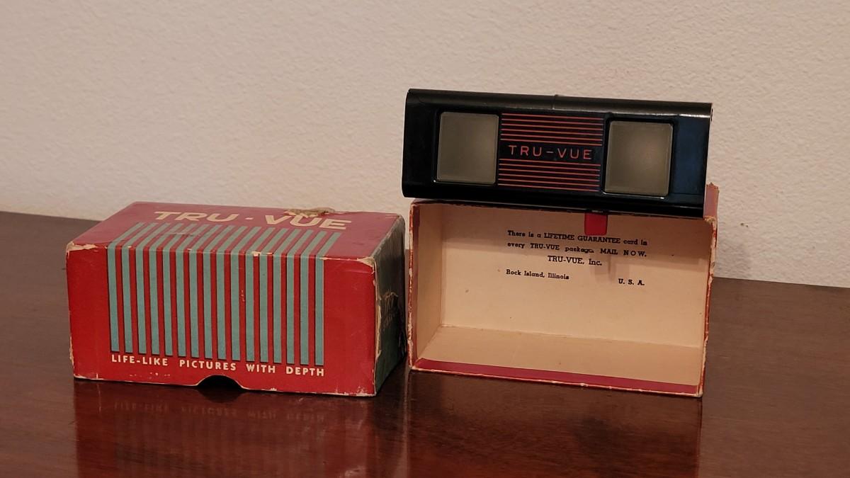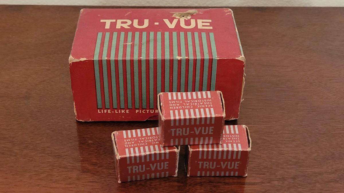 Tru-Vue, a subsidiary of Rock Island Bridge and Iron Works, was a manufacturer of stereoscopic filmstrips and corresponding stereoscope viewers, based in Rock Island, Illinois, from 1932““1951 and in Beaverton, Oregon, from 1951 until the late 1960s.[1] The film strips, or film cards, were fed through a slide viewer similar to a View-Master, which was art deco or streamlined in style. The viewers were made of bakelite and available in multiple colors. When held up to light the images appeared in 3D. The films were based on attractive scenery, children's stories, travel, night life, and current events. The company was purchased in 1951 by Sawyer's“”the manufacturer of the View-Master“”because Tru-Vue had an exclusive contract to make children's filmstrips based on Disney characters.[2] Tru-Vue moved at that time from Rock Island, Illinois, to Beaverton, Oregon,[3] near where Sawyer's had built a new plant, and for a few years was a subsidiary company of Sawyer's.[4] Eventually, it became only a brand name. Both View-Master and Tru-Vue products were manufactured into the 1960s by Sawyer's.