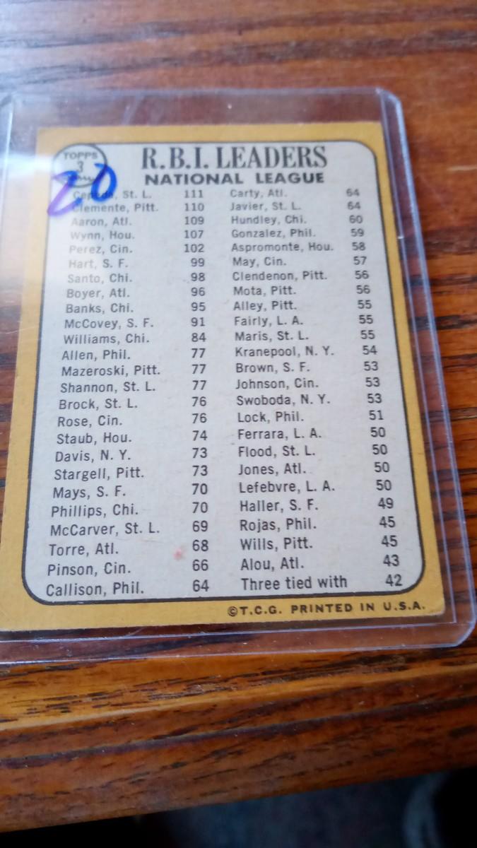 LOT 32 1967 TOPPS CARD WITH AARON, CLEMENTE, AND CEPEDA