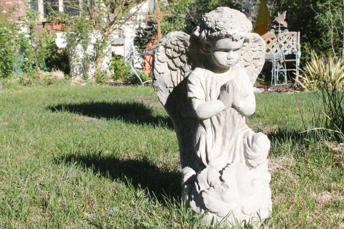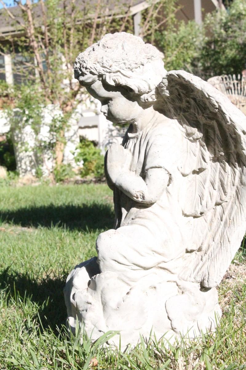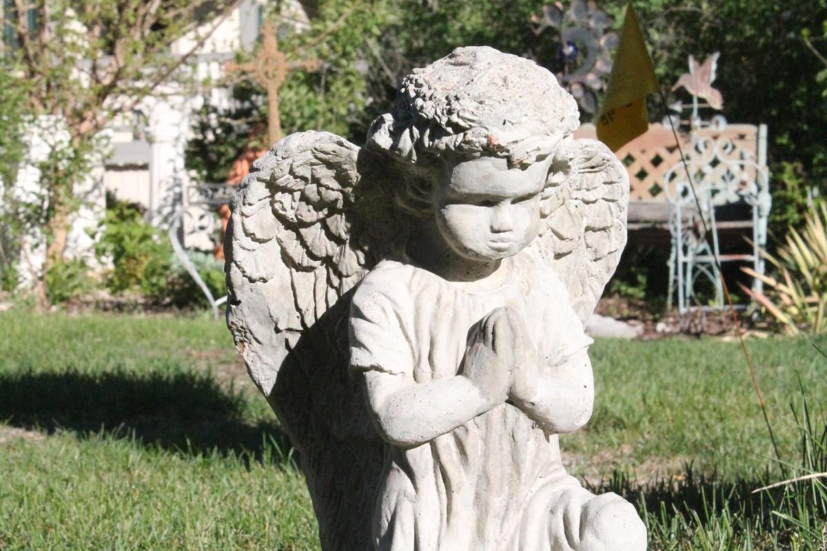 Lot 32: Vintage Cement Praying Angel Cherub Outdoor Garden Feature