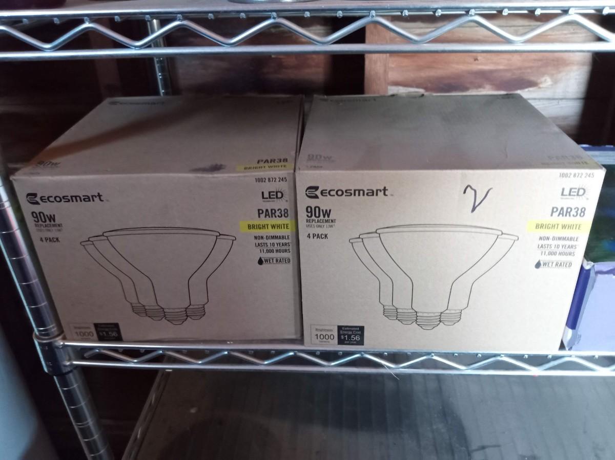 TOTAL OF 6 - 90W BULBS, 1 SET OF 20 COUNT STRING LIGHTS, 8 PACK OF 60W BULBS AND A BAG OF CABLE CLIPS