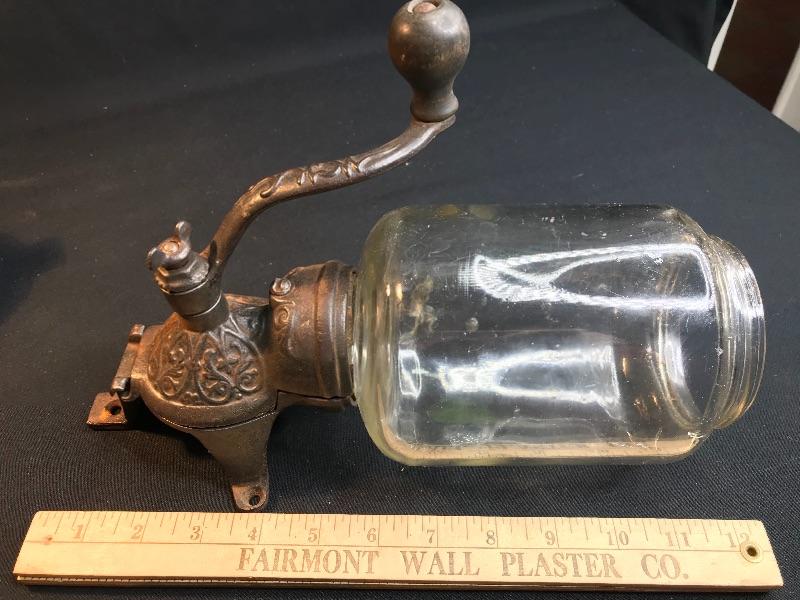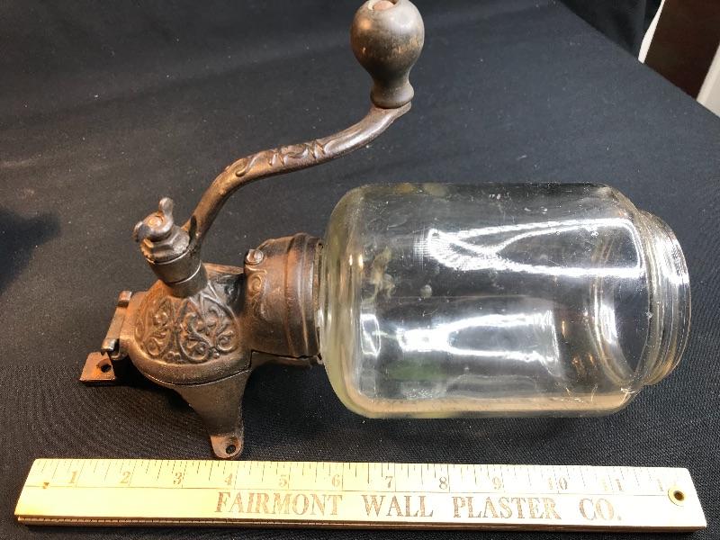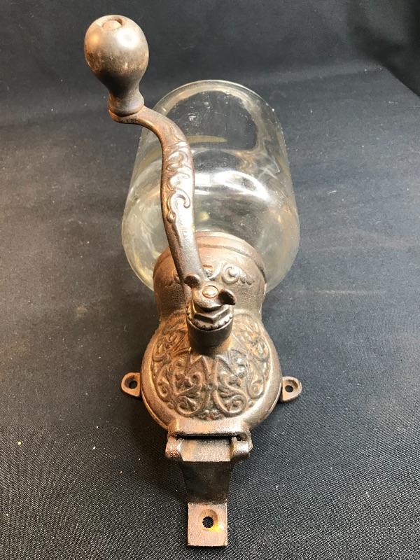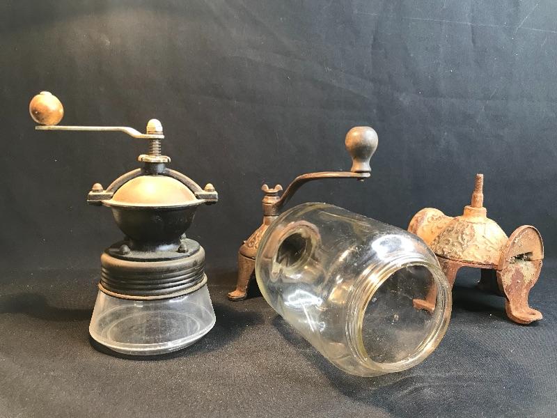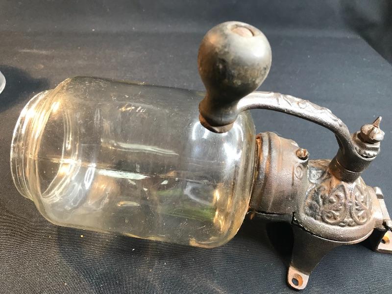 These are heavy duty cast iron coffee mills. The smaller one with glass base, is for counter use, and the larger goes on the wall but has no lid. The other piece is a base and does not have glass jar. D. Please see all pictures for content of the lot, condition of the lot, and measurements if taken. Pictures are the best representation of the items listed and items are untested unless indicated in description. Thank you for looking and have fun bidding!