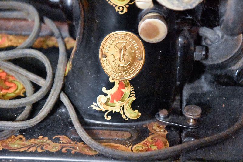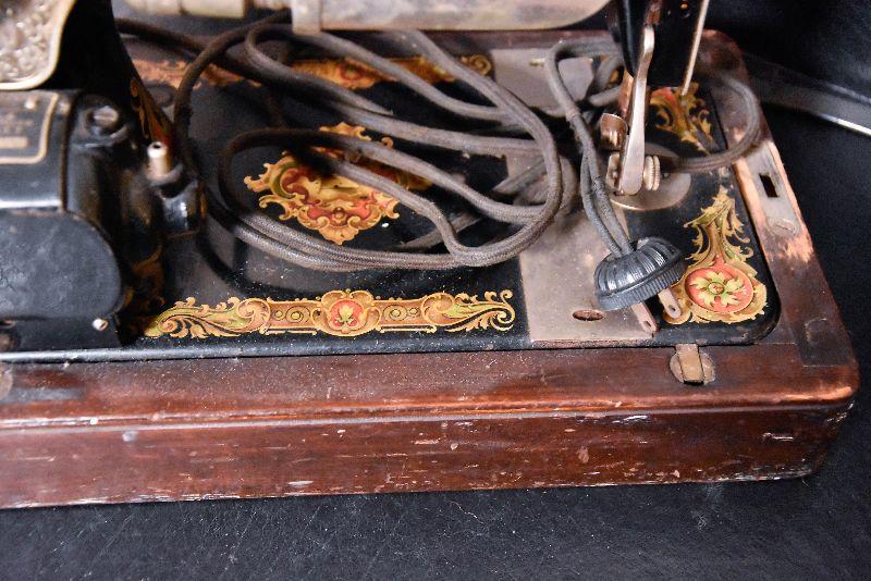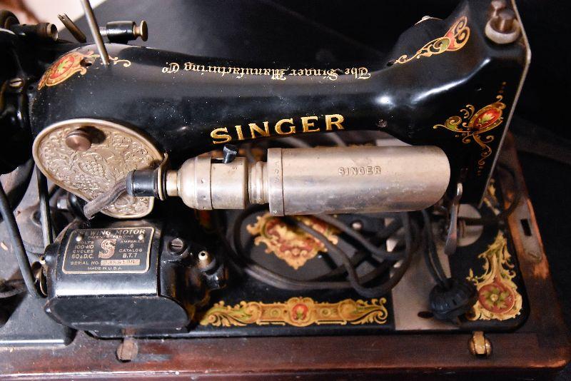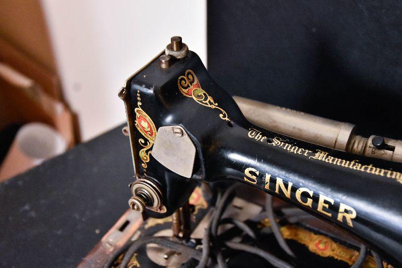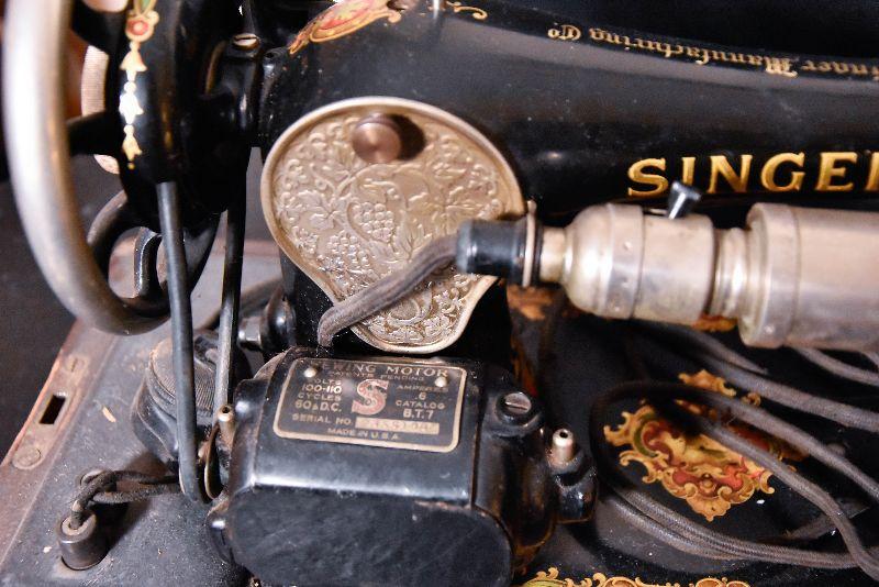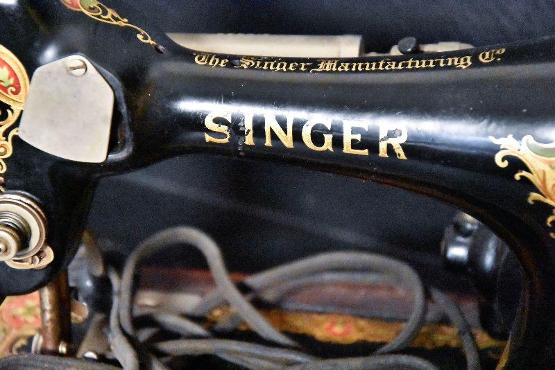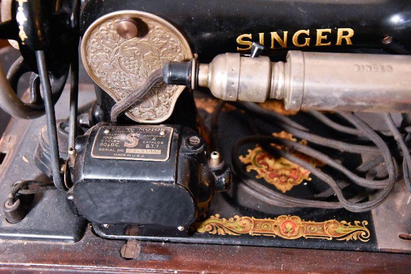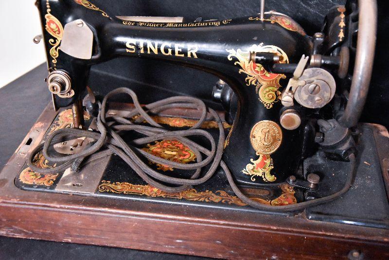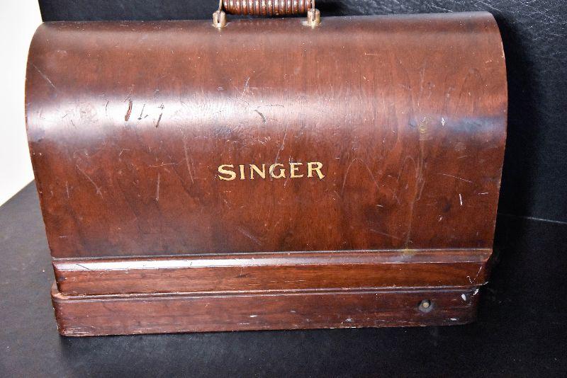 Lot 32: Antique Singer Sewing Machine B.T.7. Made in 1920 With Wood Case