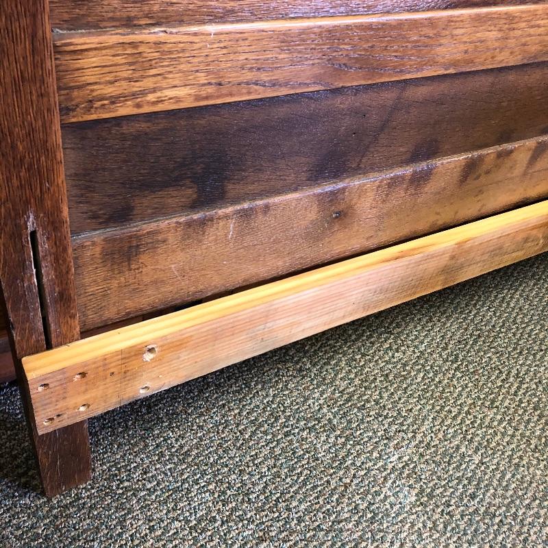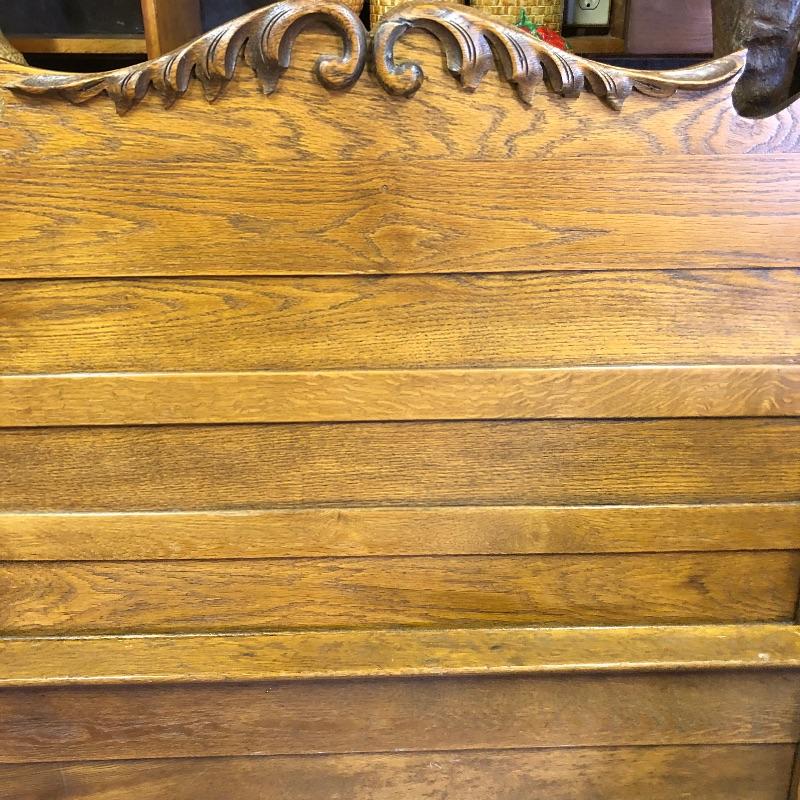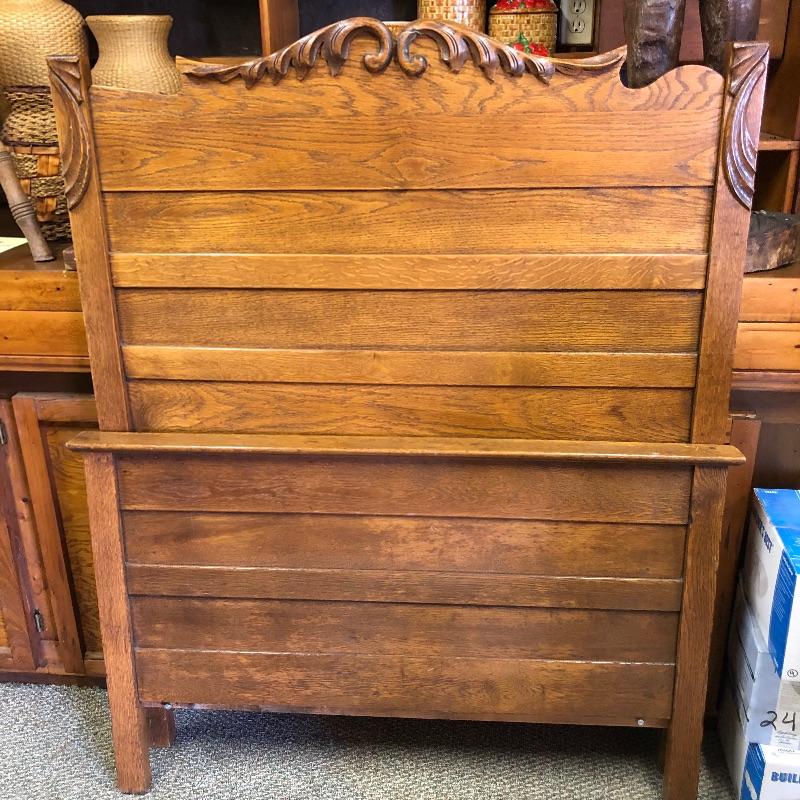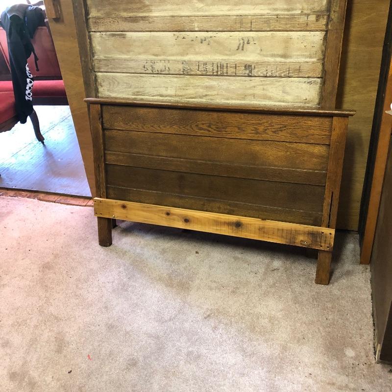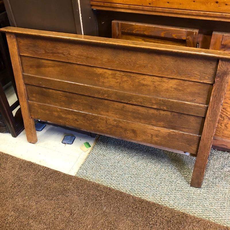 This is a beautifully crafted antique oak twin head and matching footboard. Both pieces are in excellent condition. They both have had pine boards added to make attaching them to a bed frame easier. No rails are included in this lot.