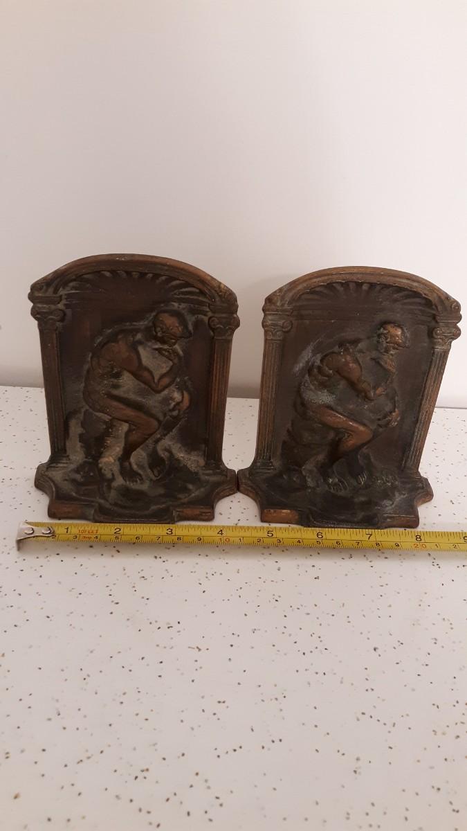 Lot 32- Cast Iron bookends-"The Thinker" Nice and heavy. These would hold your books - no problem-We believe these are dated around 1920's.