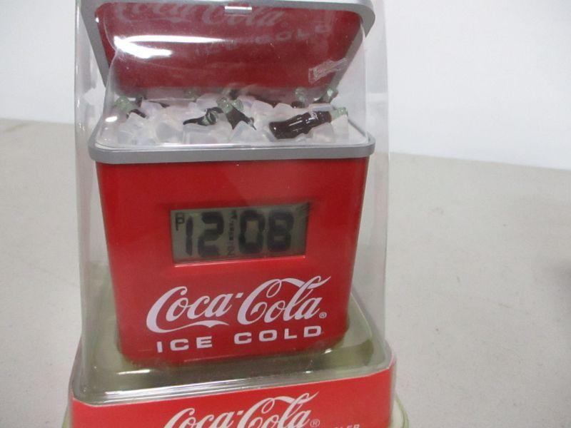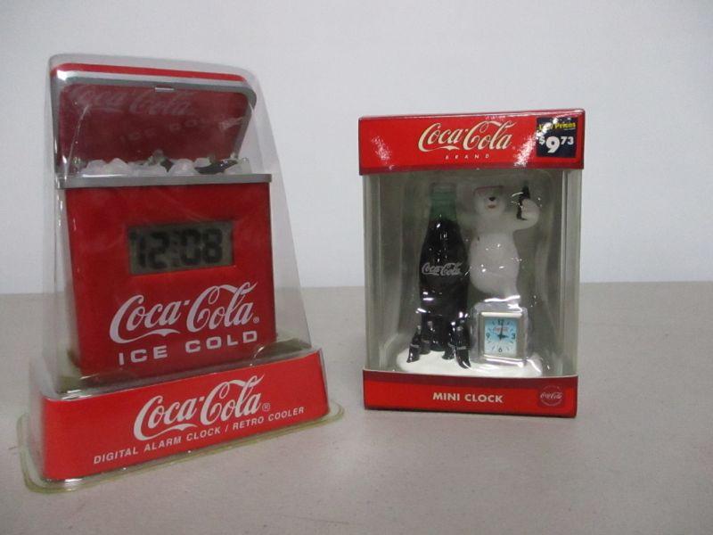 Lot 32 - Coca Cola Retro Cooler Alarm Clock & Bear Mini Clock