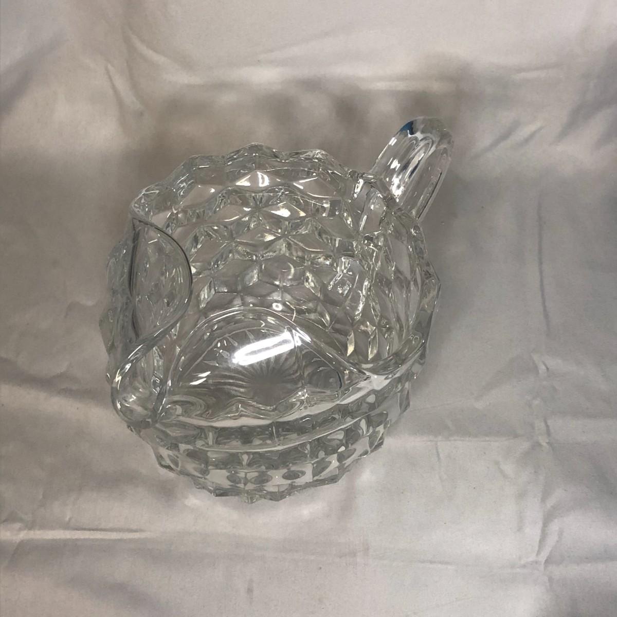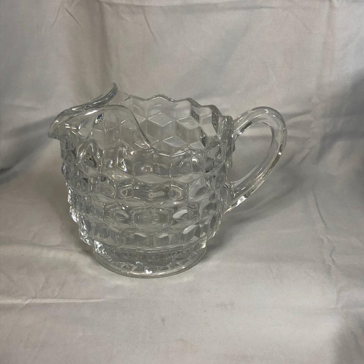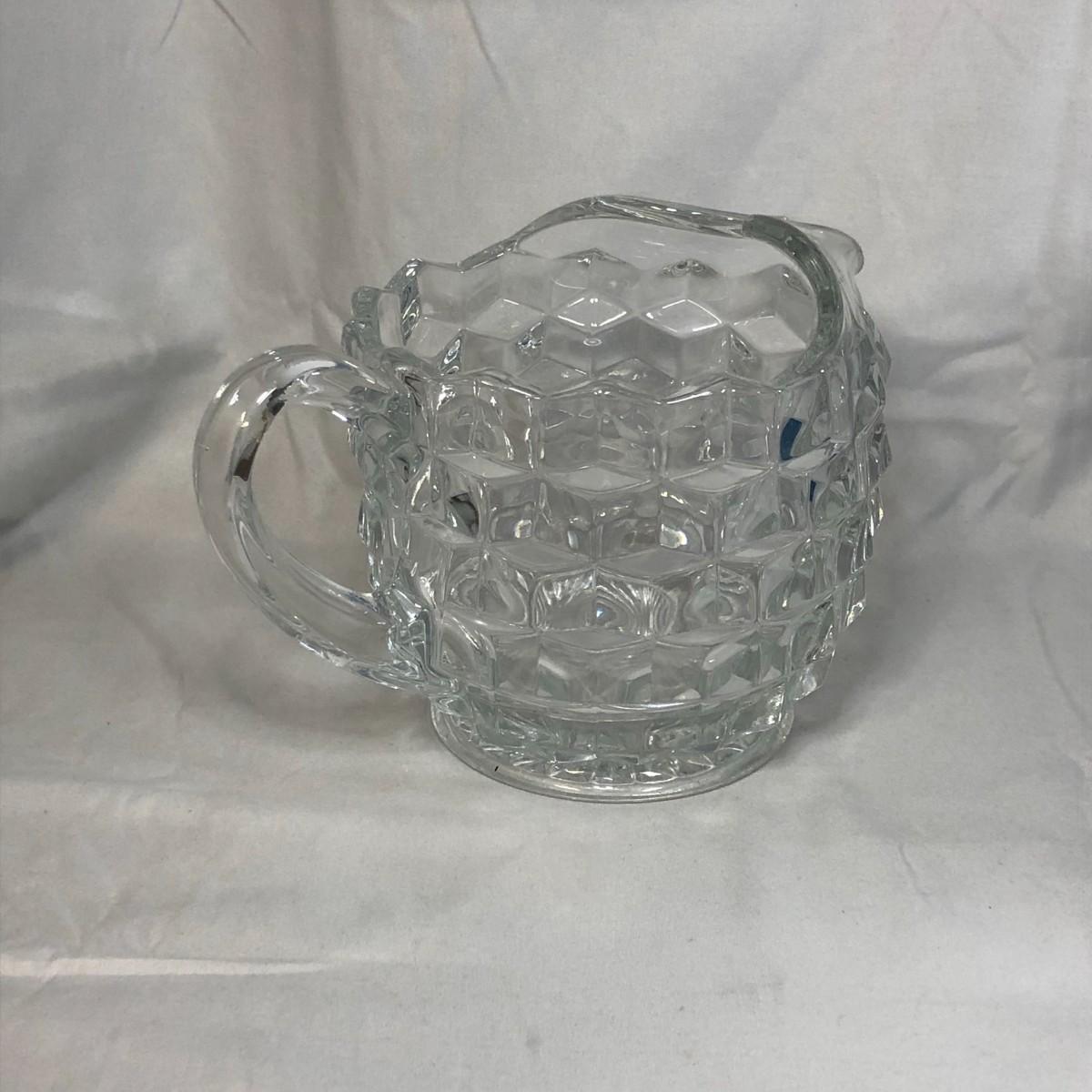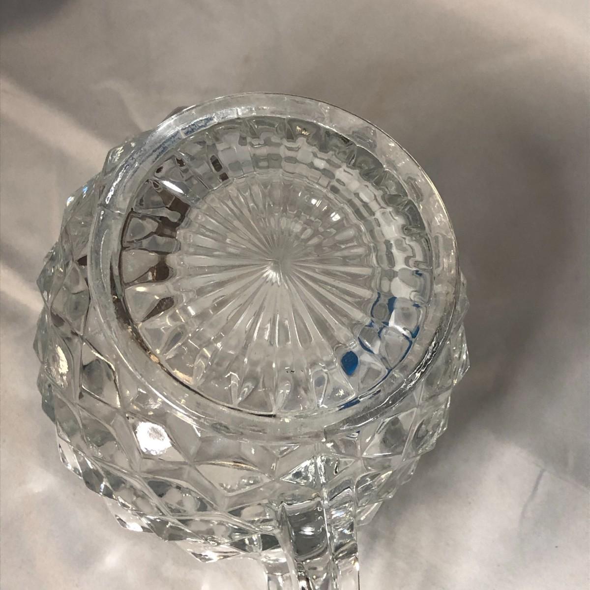 Based on the width of the design on the base, I think that this is Colony Whitehall, but the only other pitcher that I found in this style was listed as being Fostoria American. You make the decision. It is in excellent condition and stands 6" tall.