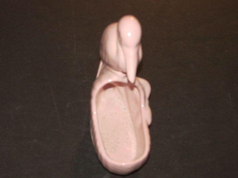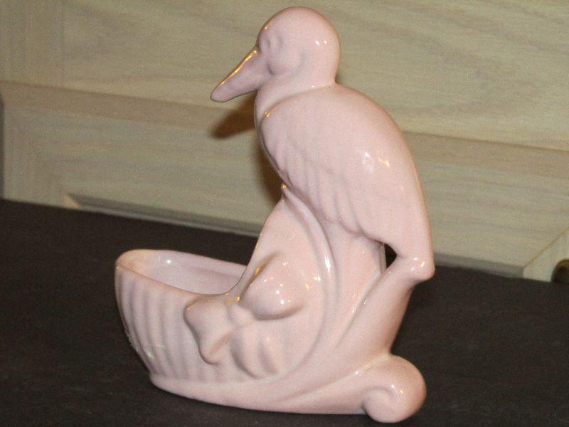 Pink Haeger ceramic stork baby planter. Vintage from 1950's.
