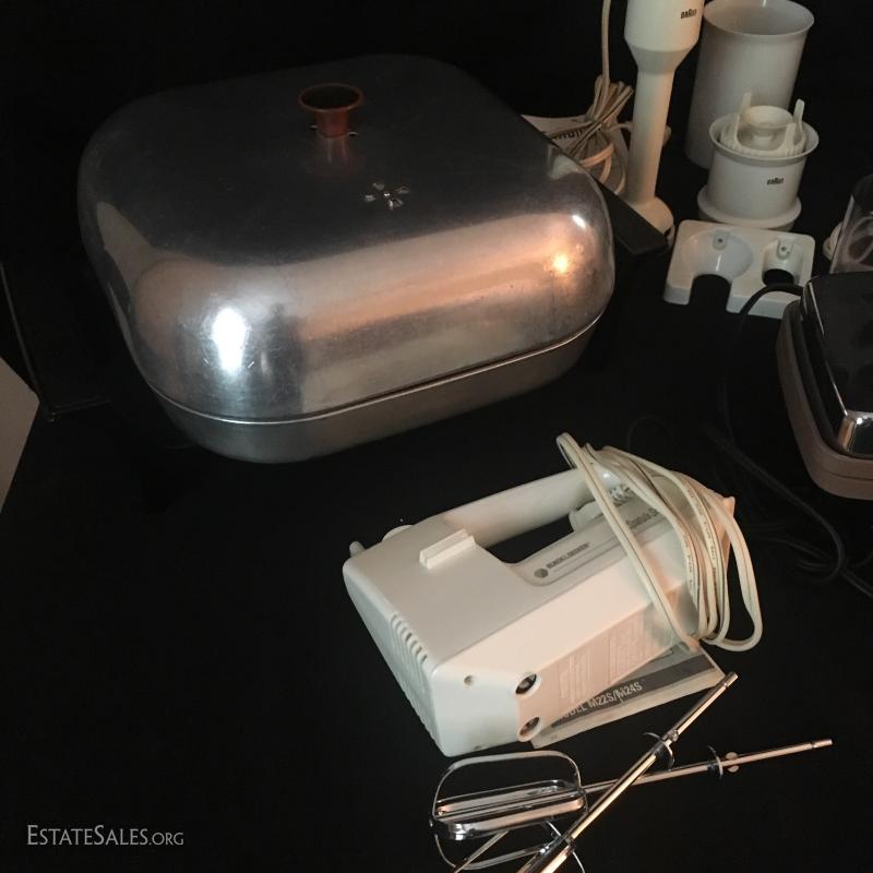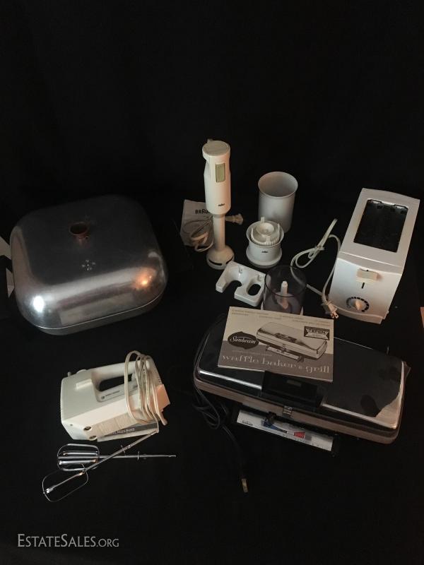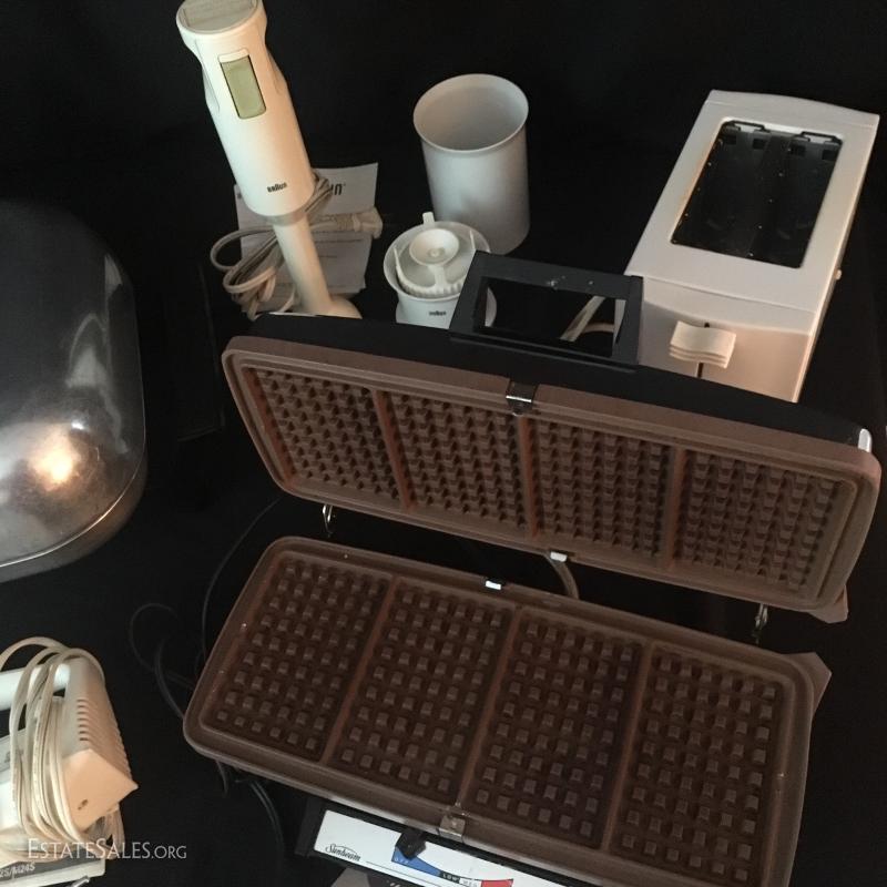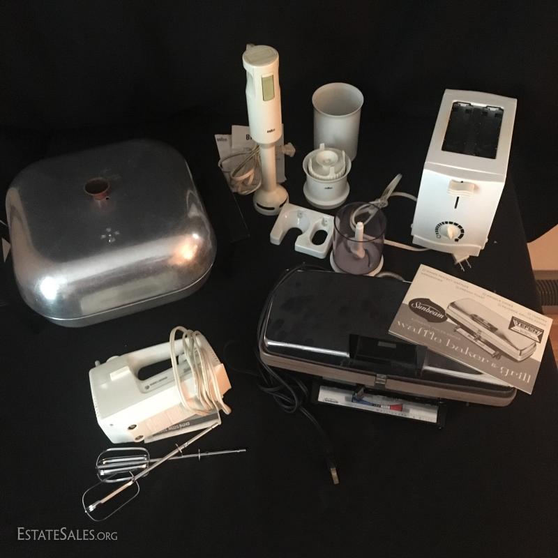 5 pieces of kitchen assistance. Sunbeam waffle baker and grill, Westinghouse 2-slice toaster, Braun hand blender, B&D mixer and Freestanding stainless cooker. All used but appear to be in good condition. This lot is available for local pick up in Asheville, NC only.