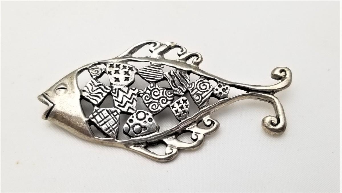 Lot #32 Mexican Sterling Silver Fish Brooch