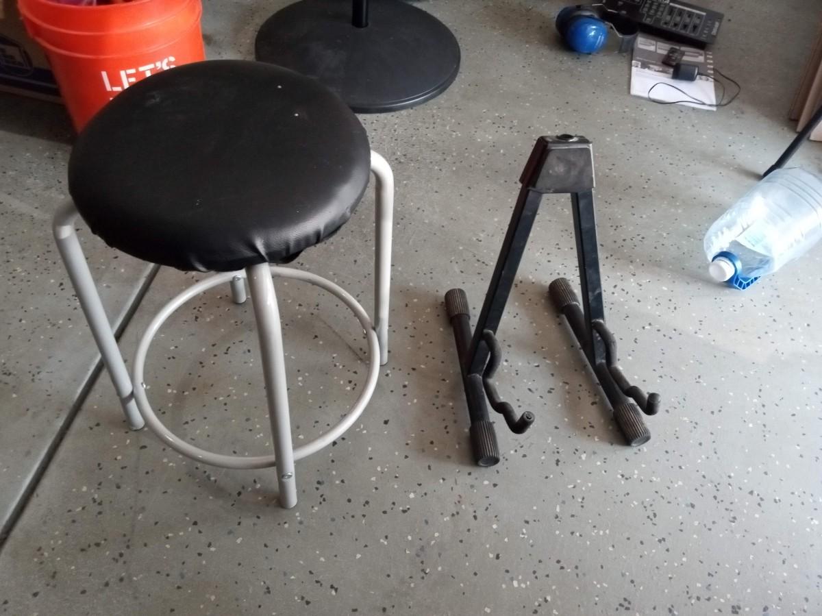 LOT 32  MUSICIANS STOOL AND A GUITAR STAND