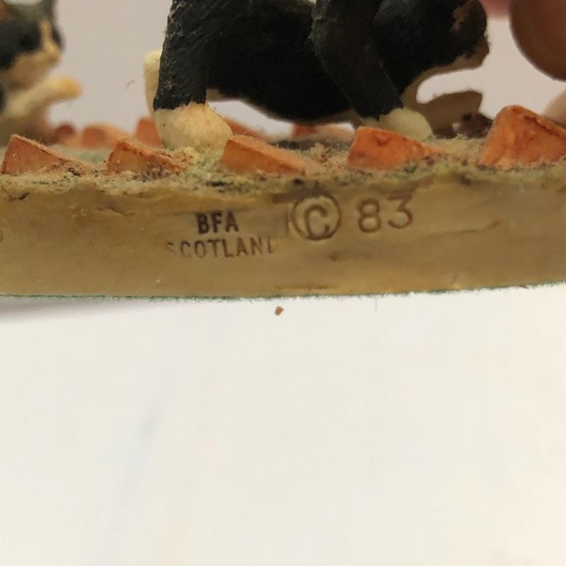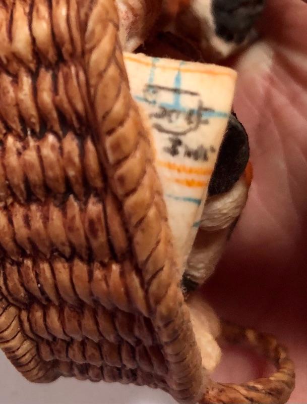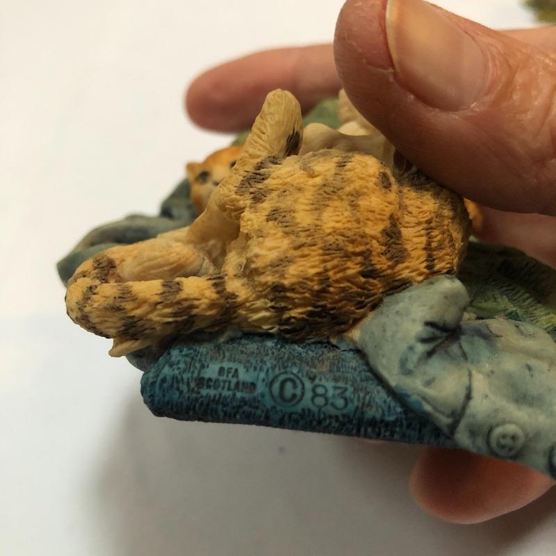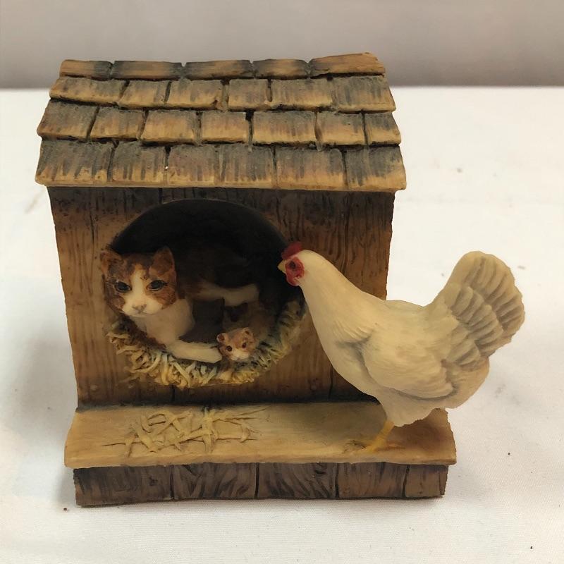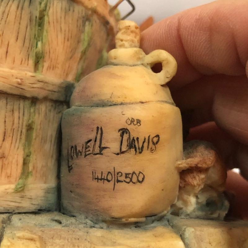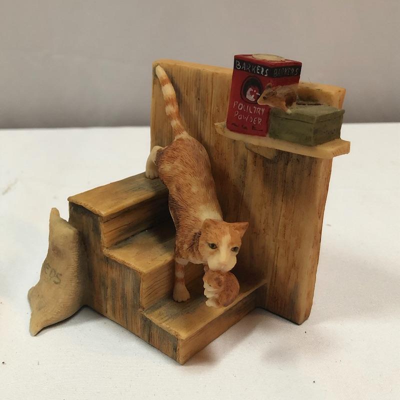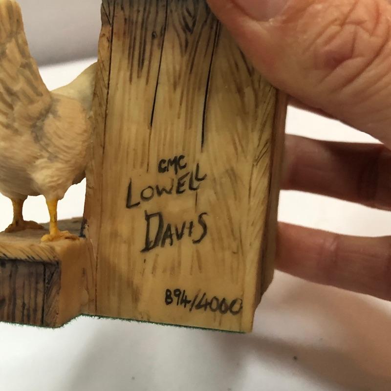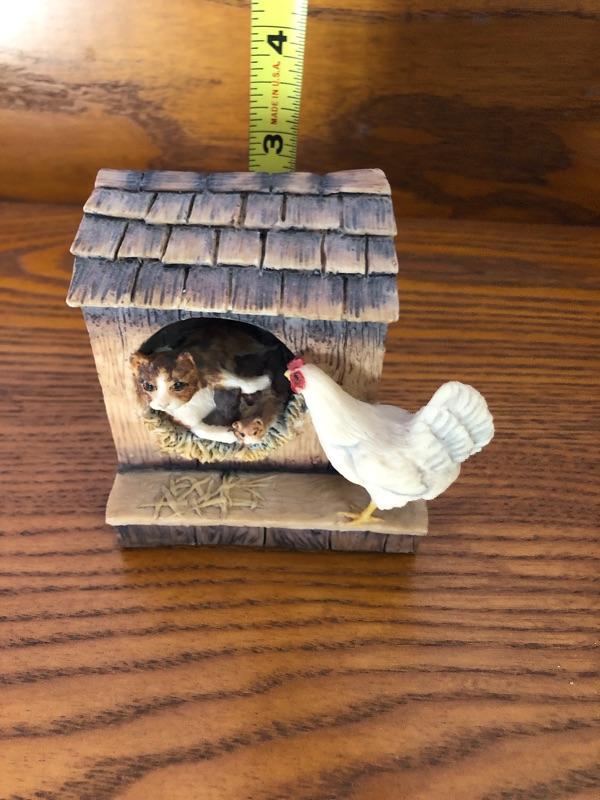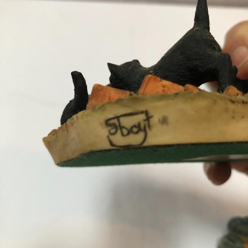 A total of nine cat figurines in this lot. The first 5 pictured have Lowell Davis makers marks and the last 4 are marked differently, but with a similar look to them. One figurine has a an animal cat that it has become unattached that could easily be glued back into place; this is shown in the images.