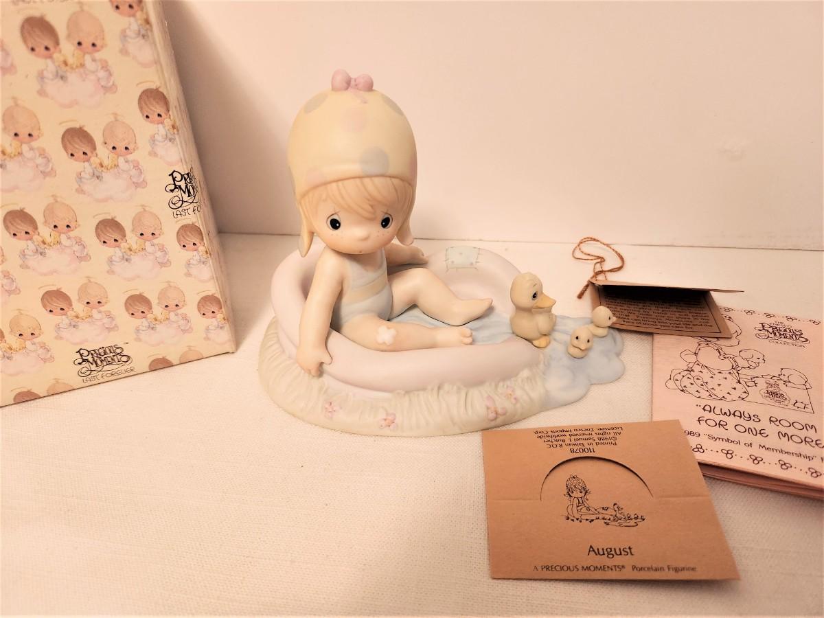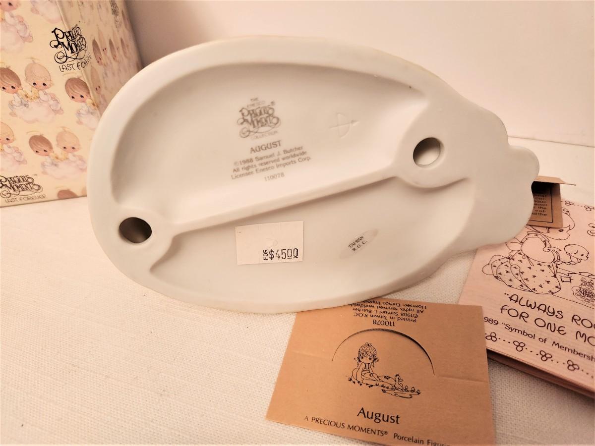 Part of the 1987-1988 Months of the Year series, Precious Moments "August" figurine, design # 110078, original price 45.00, comes with box and paperwork. Good condition.