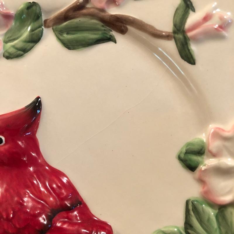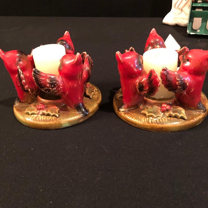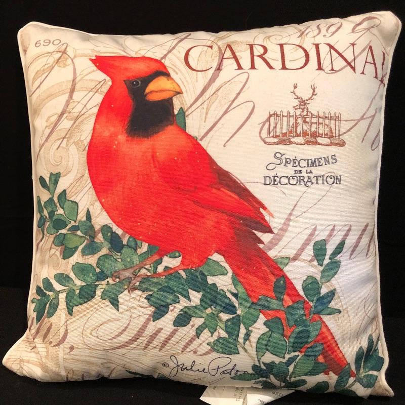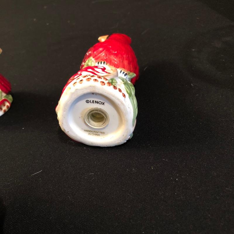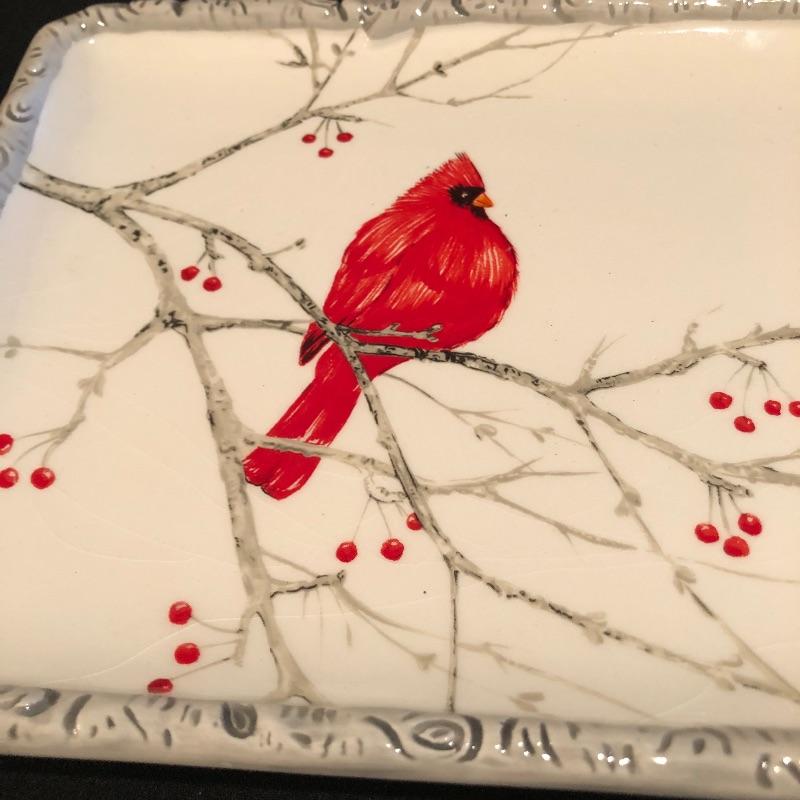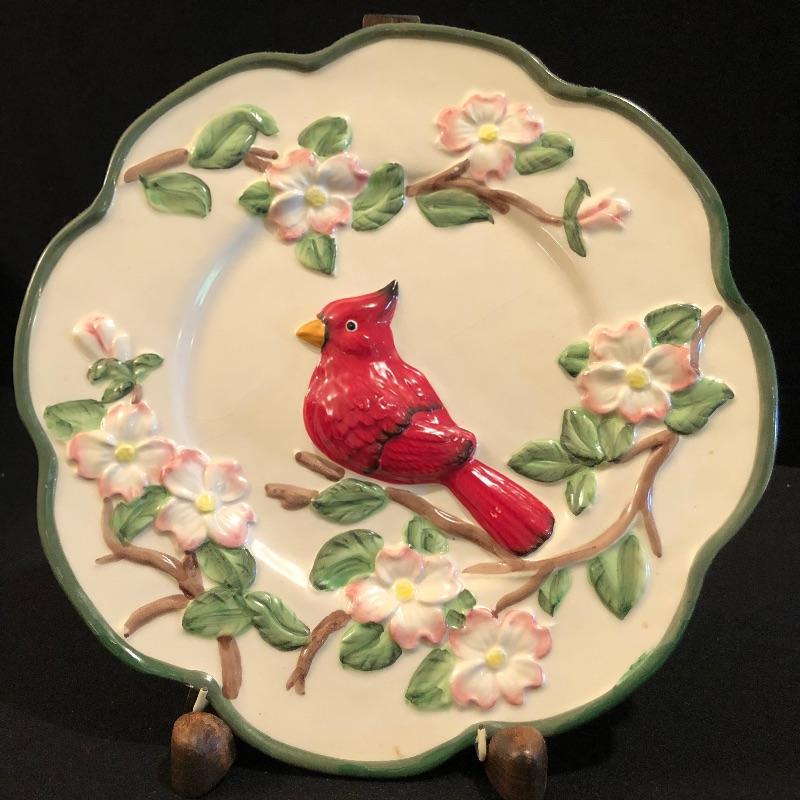 This large lot celebrates our state bird, the Red Cardinal. A wonderful assortment of items that includes a salt & pepper shaker set, decorative plates and a pillow. Lot also features a cheese knife set, a 19” x 29” doormat, a metal bird feeder with poinsettia accents, pair of candles with tag, votive holder, a small stamped wooden decorative coaster, Orvis clock, and a serving dish set that includes a platter, an unopened butter dish and lidded bowl. Clock measures 12”d and could use a quick cleaning. It also needs AA batteries and was not tested. The bird feeder needs a small repair to be able to hang it for its intended purpose. See pictures for known blemishes.