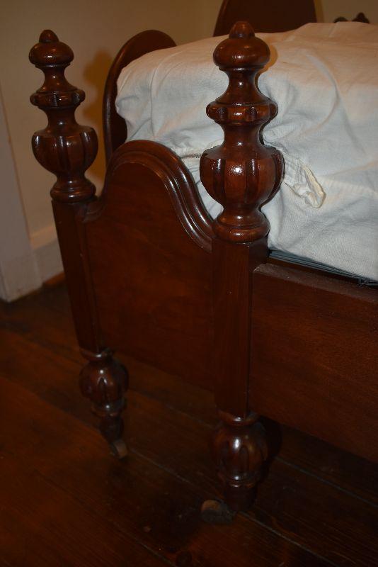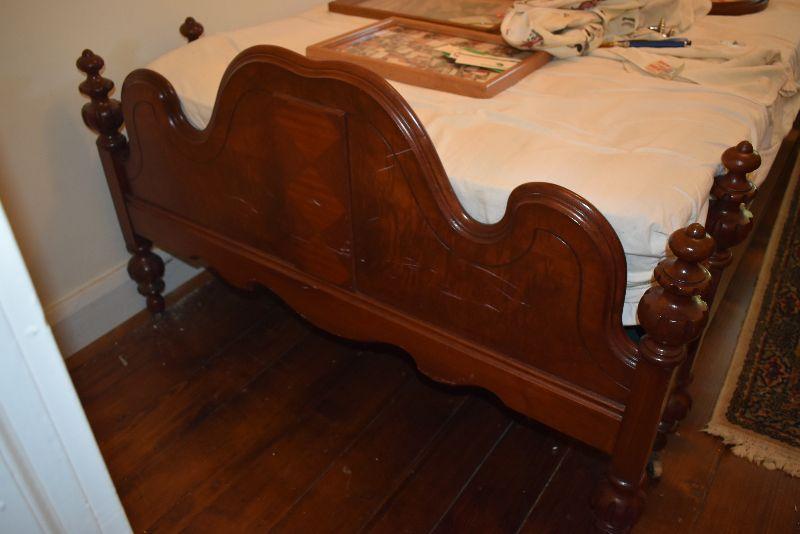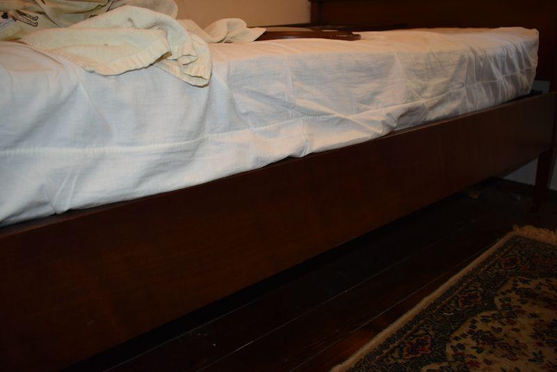Wooden headboard, wooden side rails, and footboard. Very good condition. Mattress is optional. Bring help to move from second floor.