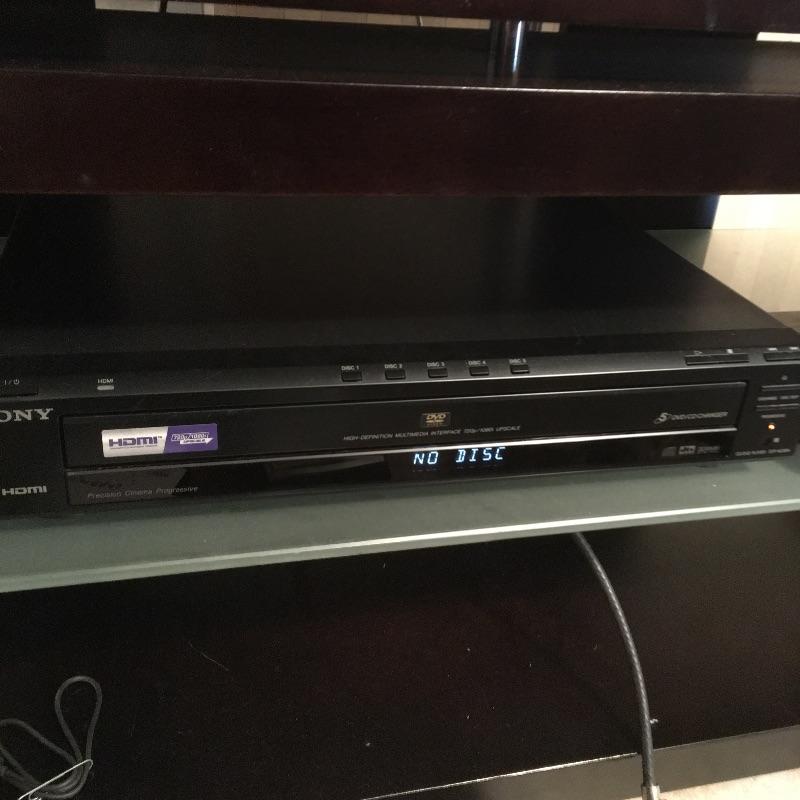 Lot includes a Sony DVD five disc player and a small portable Magnavox DVD player. Sony DVD player powered on when tested, Magnavox portable DVD player could not be tested as battery is dead. Shipping available