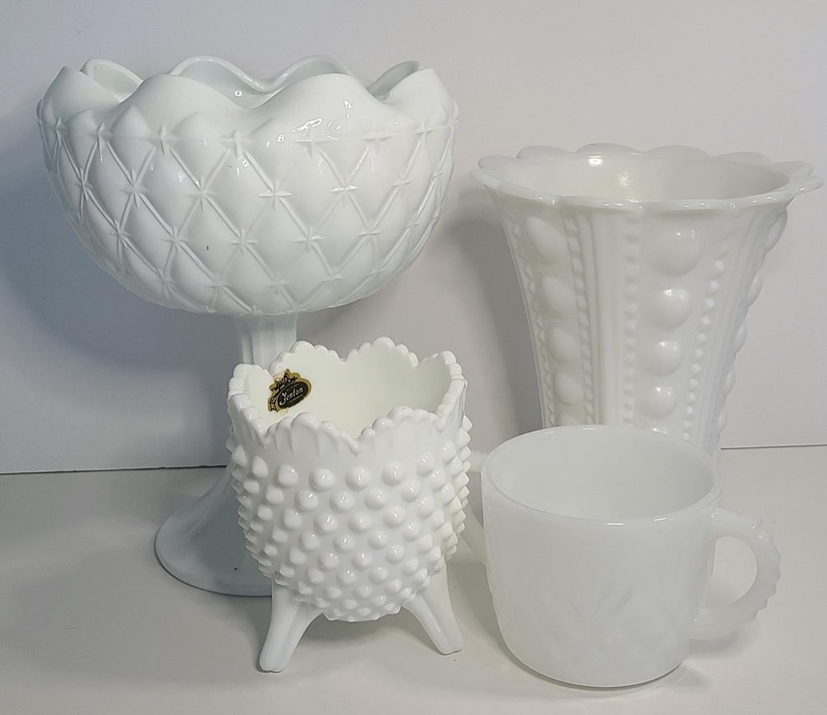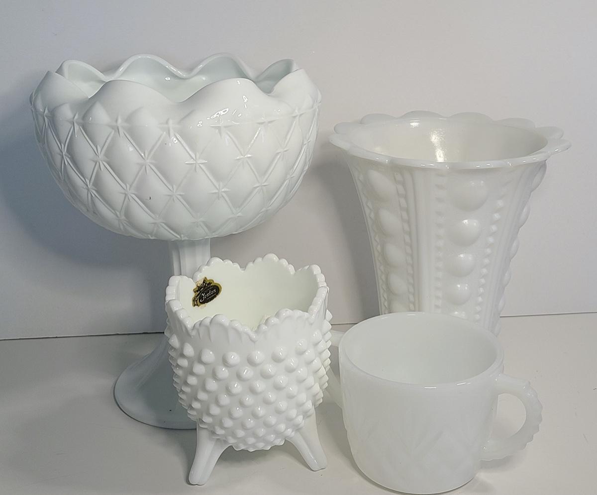 Lot 32: White Milk Glass & Fenton Hobnail