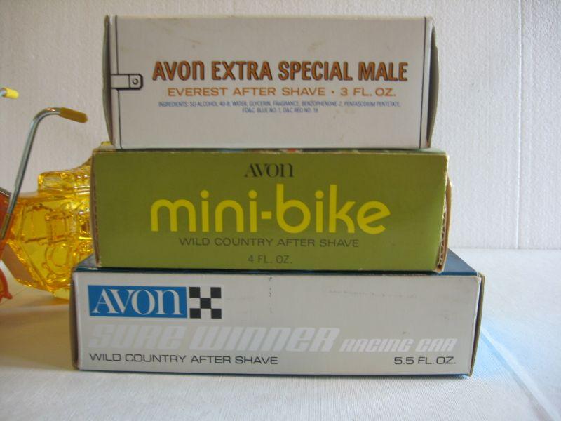 Three unused Vintage Avon After Shave: RFD 1-Everest; Sure Winner Racing Car & Mini Bike-Wild Country