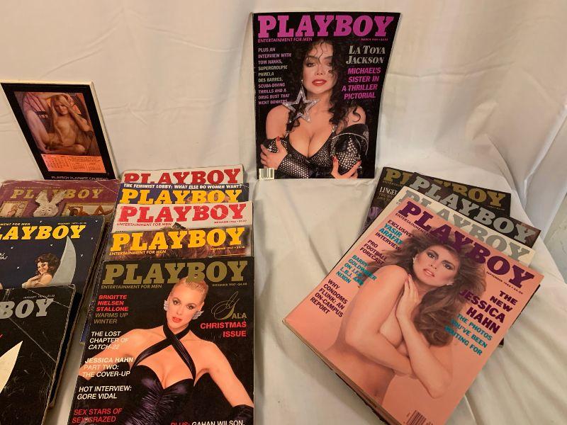 Playboy Lot: 2014/2013 Feb 1975, June 1975, Jan 1974, Dec 1973, Jan 1968, 1980, 1985, 1987, 1988 and LaToya Jackson March 1989, 1980 Playboy Playmate mini calendar plus as is, total 26 playboys