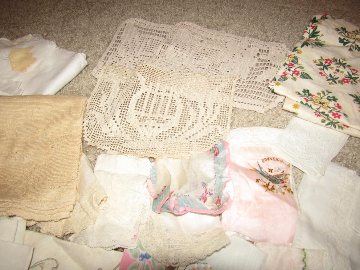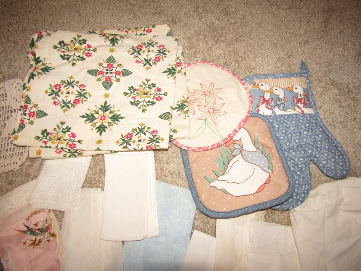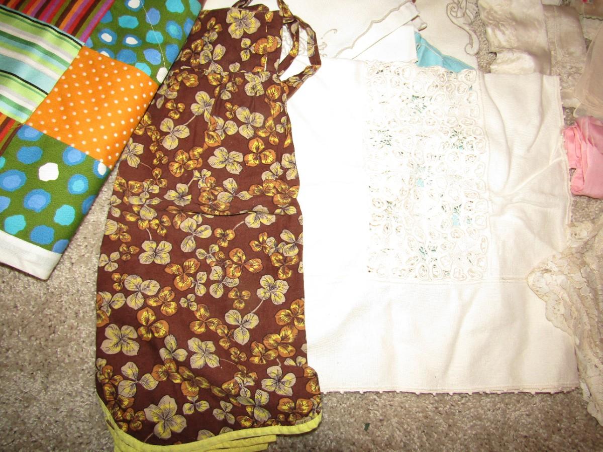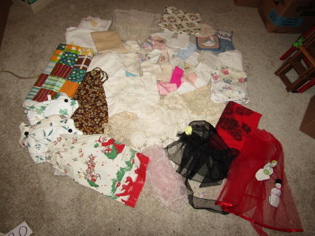 TABLECLOTHS, APRONS, TABLE RUNNERS, DOILIES, DRESSER SCARVES, MANY HANKIES AND MORE