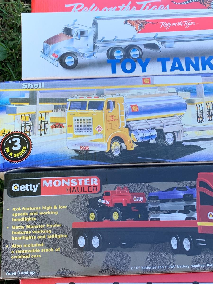 Five trucks in all with original boxes. Maybe new in box or with box.