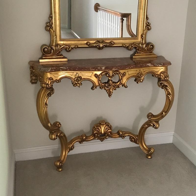 Lot 320 -Table and Mirror, Gold and Marble