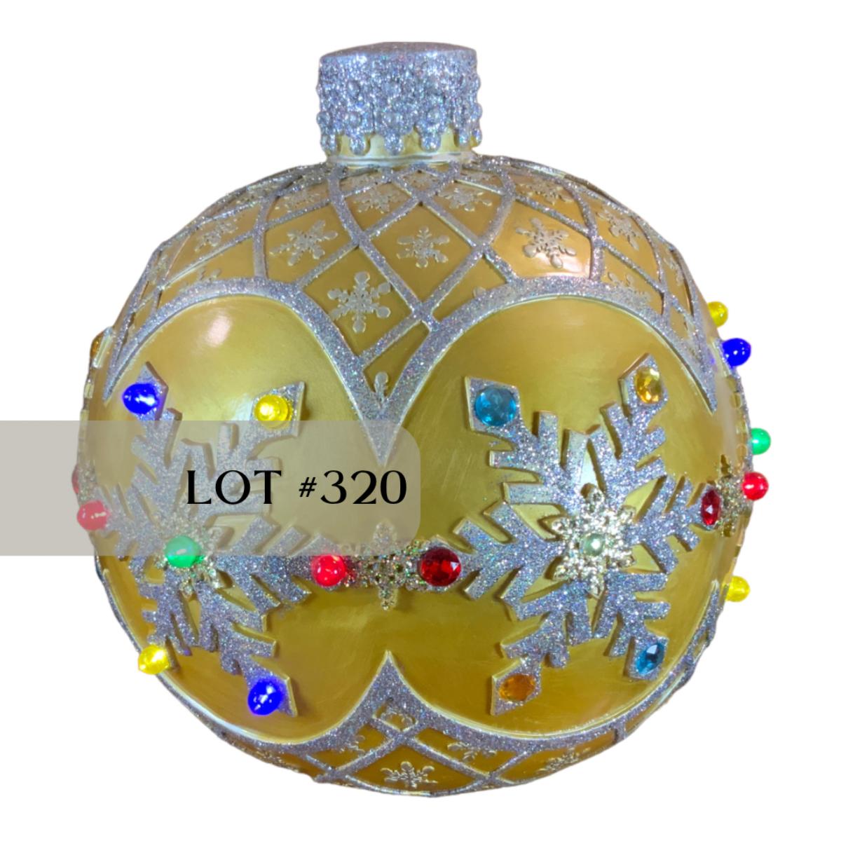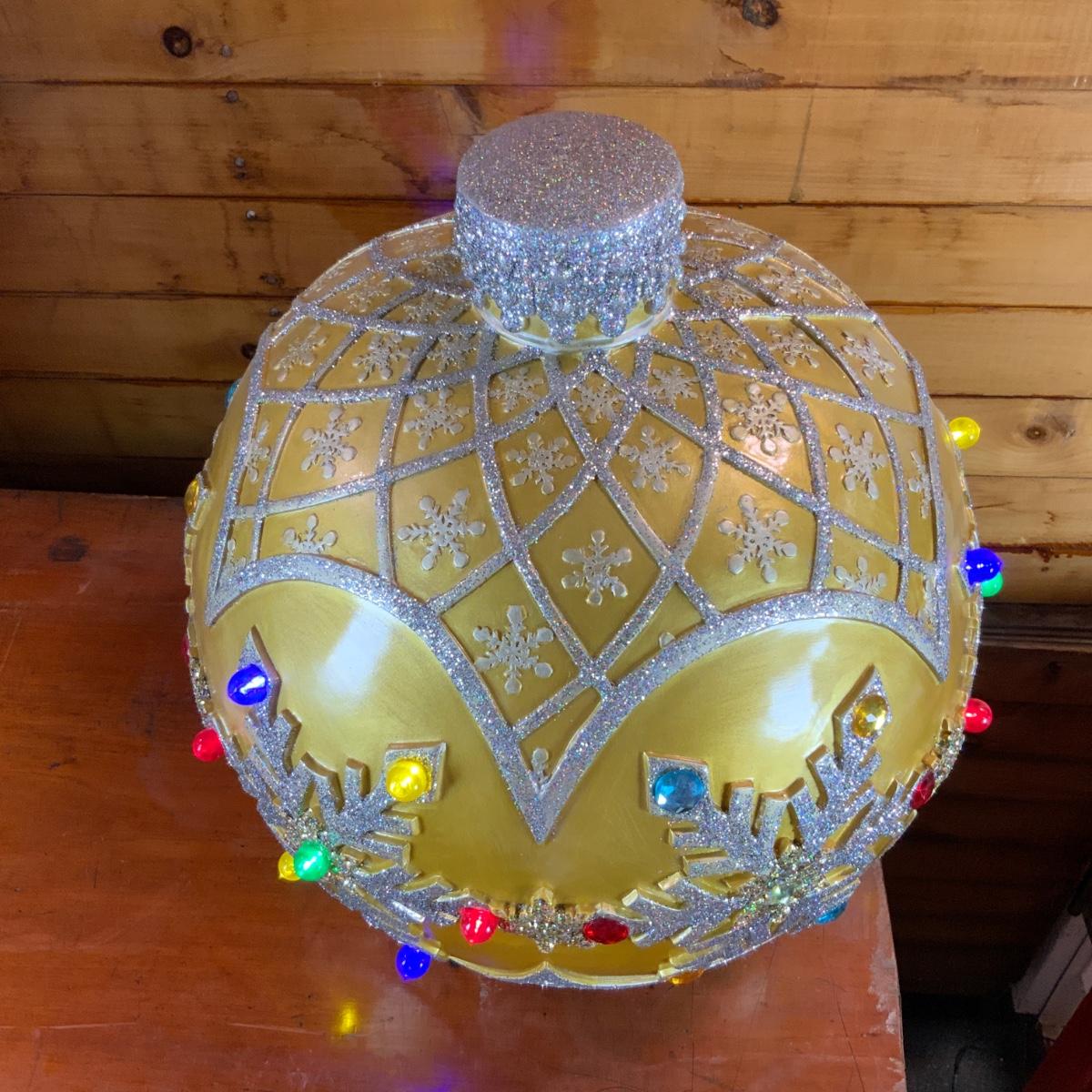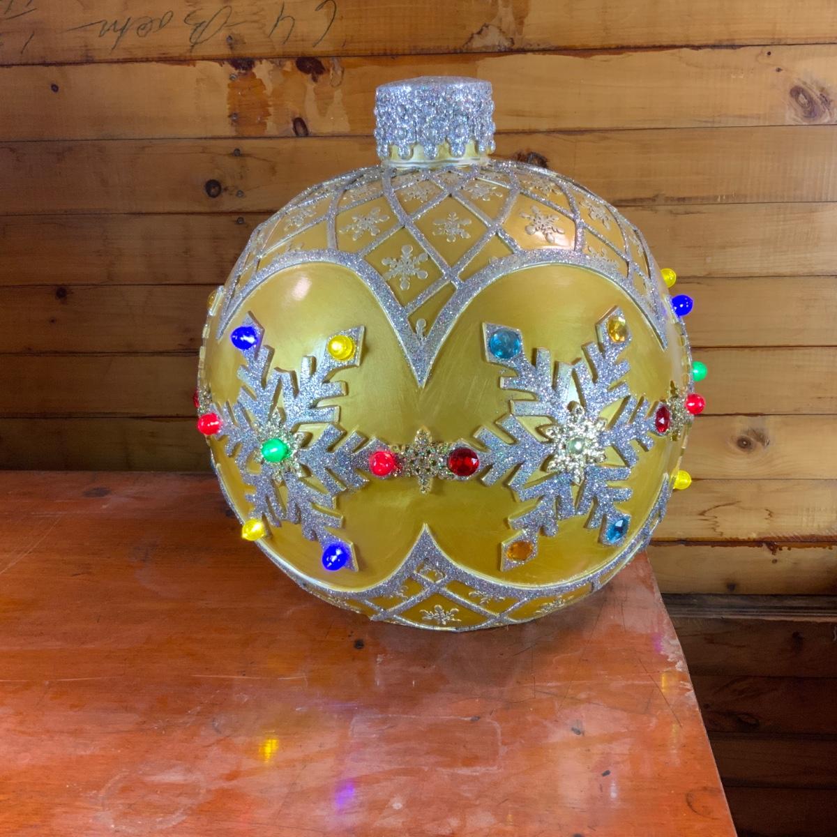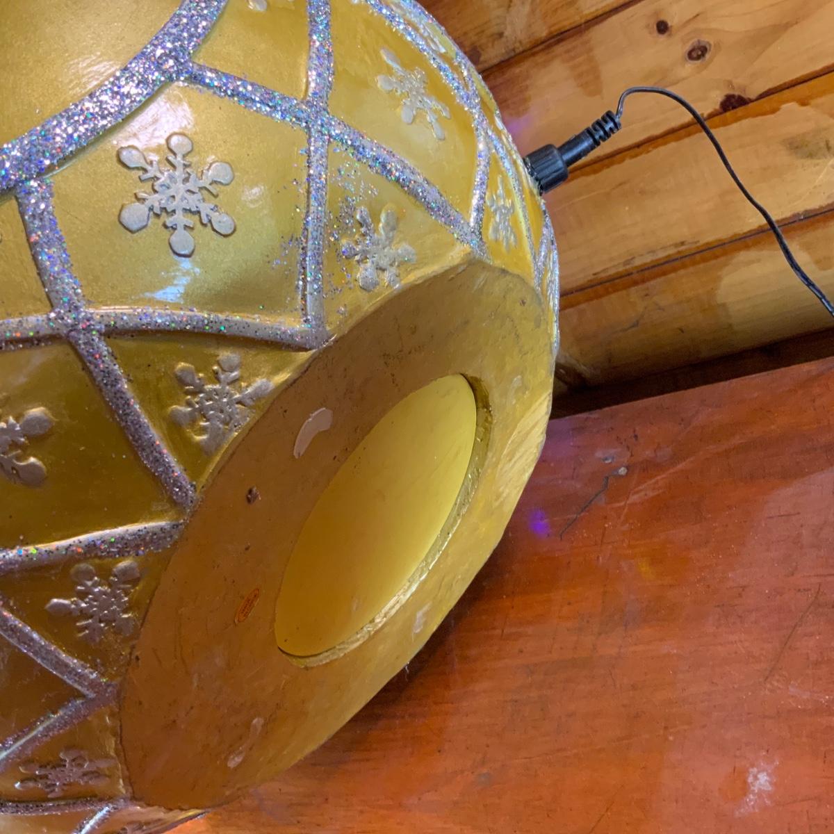 Large Light-Up Christmas Ball. Nice decor piece!! //::\\ Please see photos for details and condition. No attempt has been made to hide any imperfections. All items listed in this auction are warehouse items, and need to be cleaned. A majority of the items need restoration as well. All items are sold AS IS and WITHOUT GUARANTEE. If you are uncertain about an item, DO NOT BID. Due to the nature of this online auction in-person inspection is HIGHLY recommended. All Sales are FINAL. Pick Up Times are FIRM. Please confirm with your own schedule that you can pick up in the scheduled times listed in the Terms and Conditions. Any questions please message the auctioneer. DO NOT Contact The Harp Gallery.