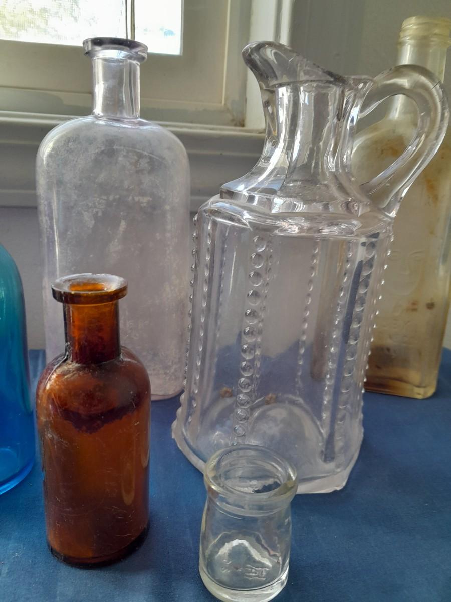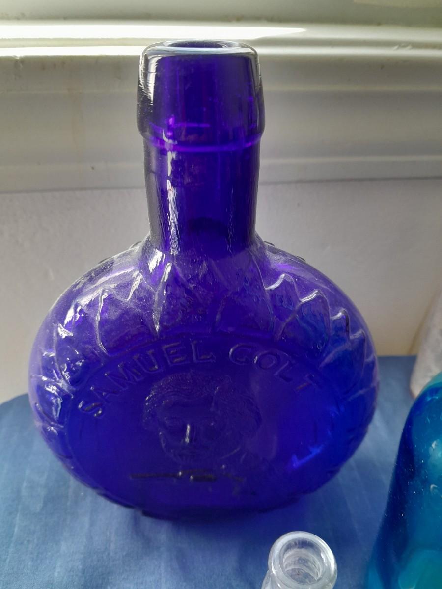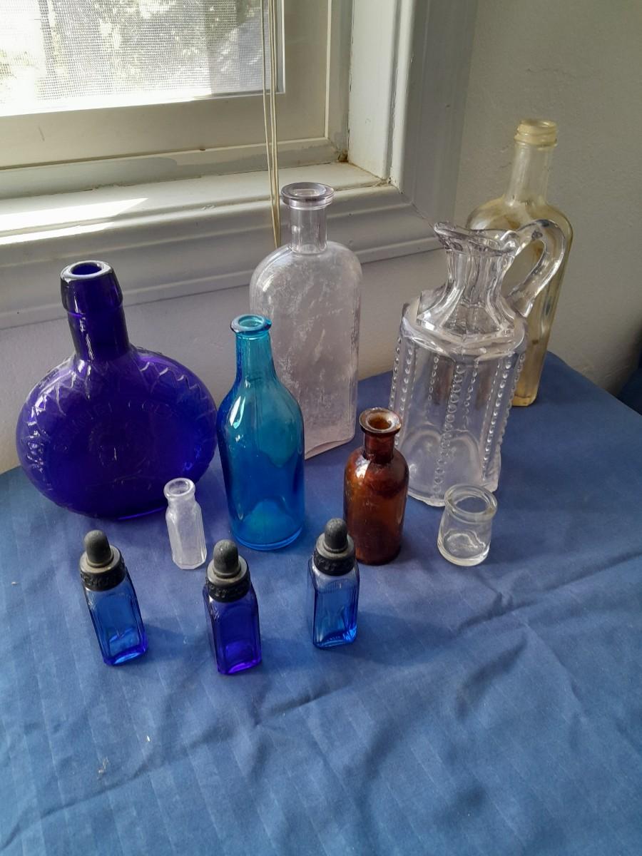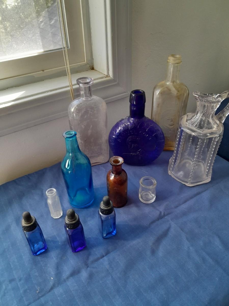 OLD BOTTLES, BLUE MEDICINE BOTTLES WITH DROPPERS