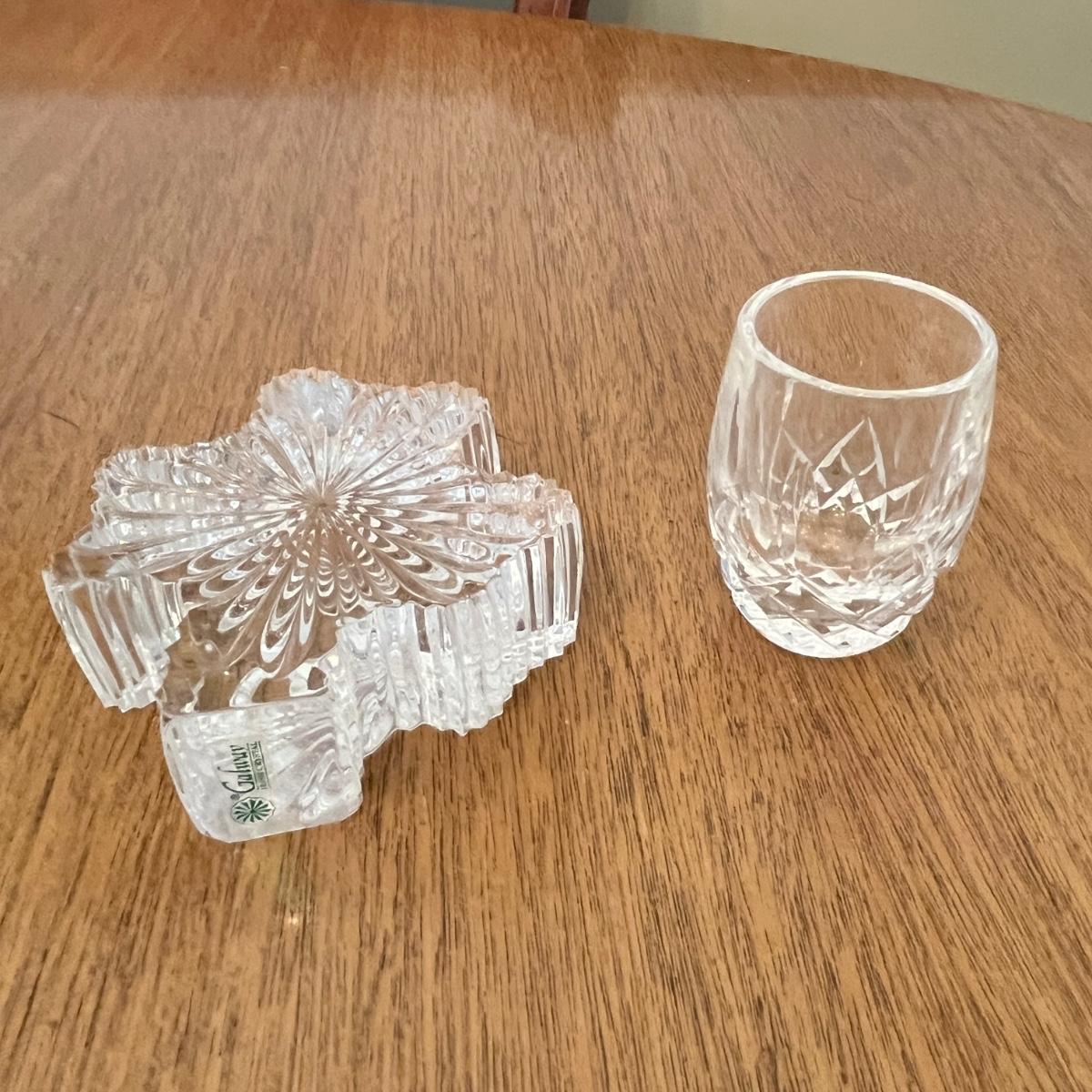 Waterford Lismore shot glass & Galway paper weight. No damage.