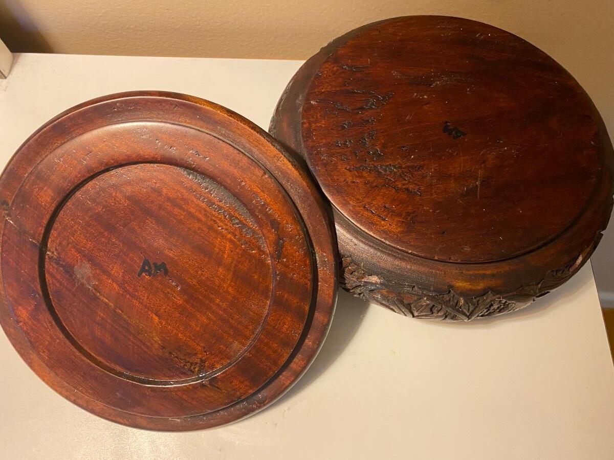 Lot 321:  Rose Wood Carved Box and Lamp w/Metal Base