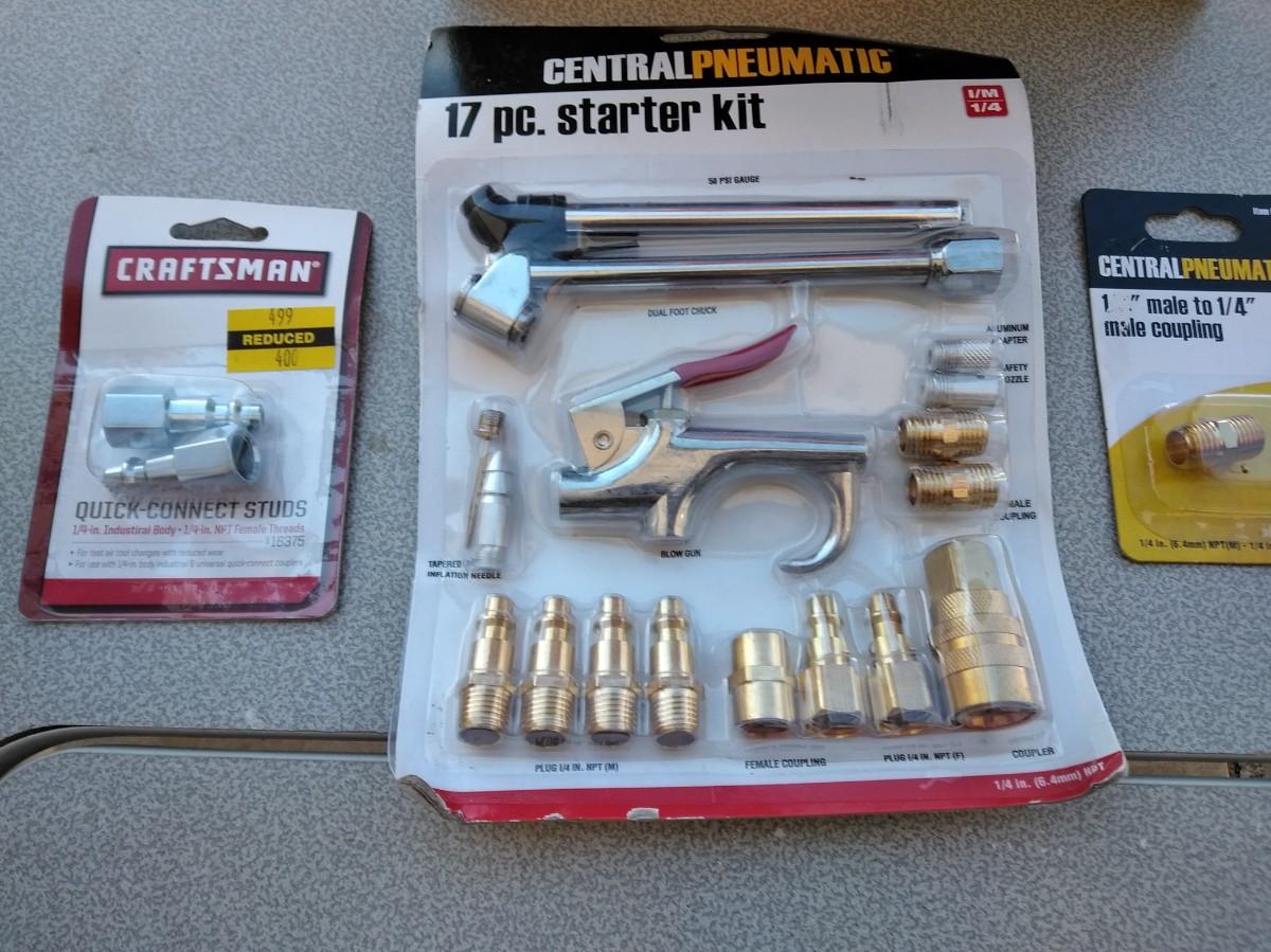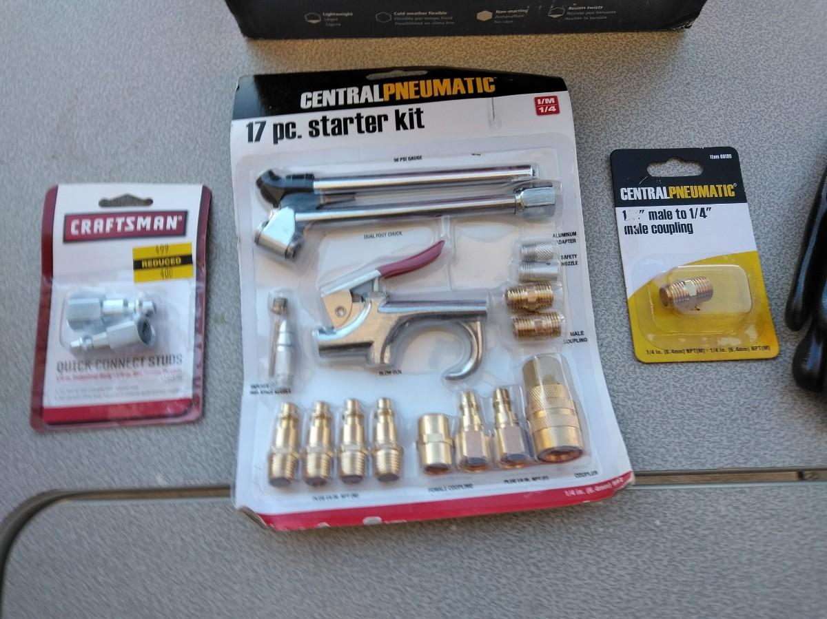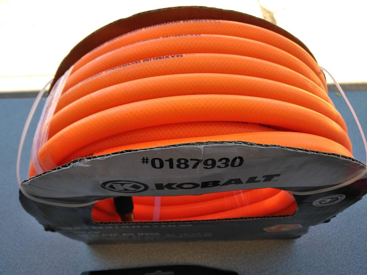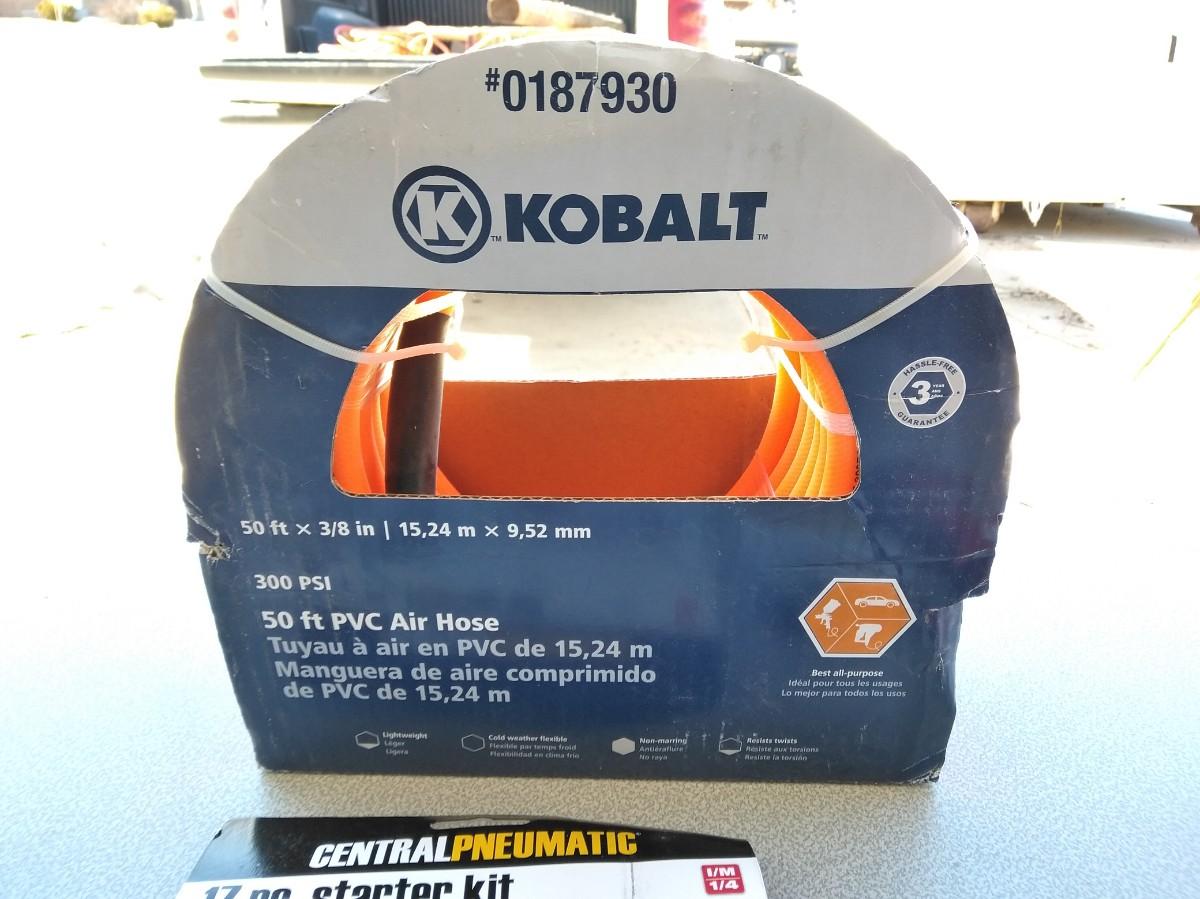 LOT 321 KOBALT 50 FT. AIR HOSE AND AIR COMPRESSOR ATTATCHMENTS